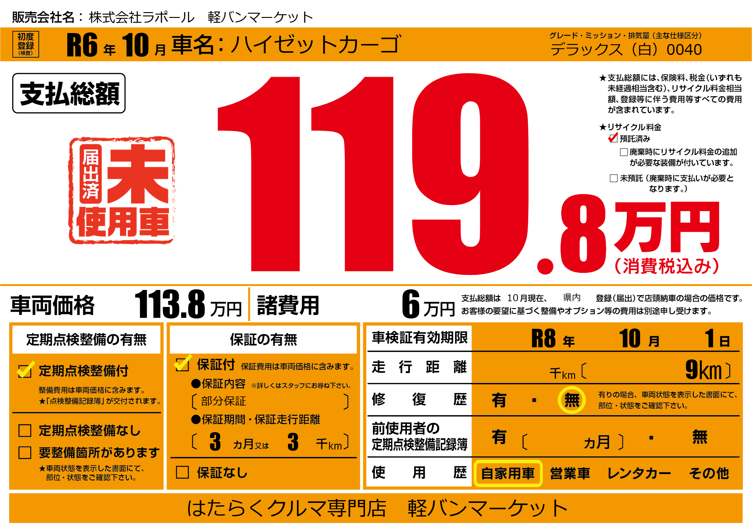 | 走行キロ | - | 初年度登録 | R6年10月 |