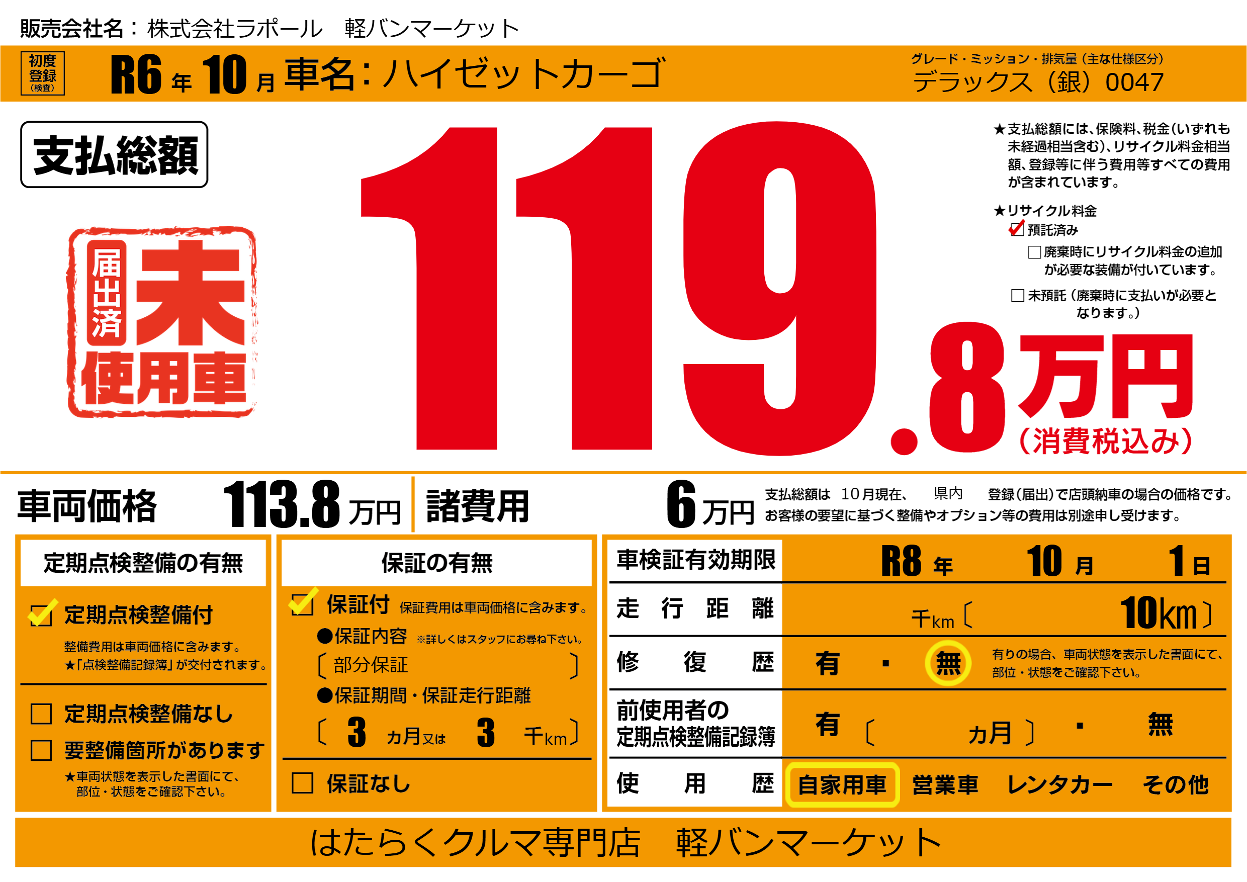 | 走行キロ | - | 初年度登録 | R6年10月 |
