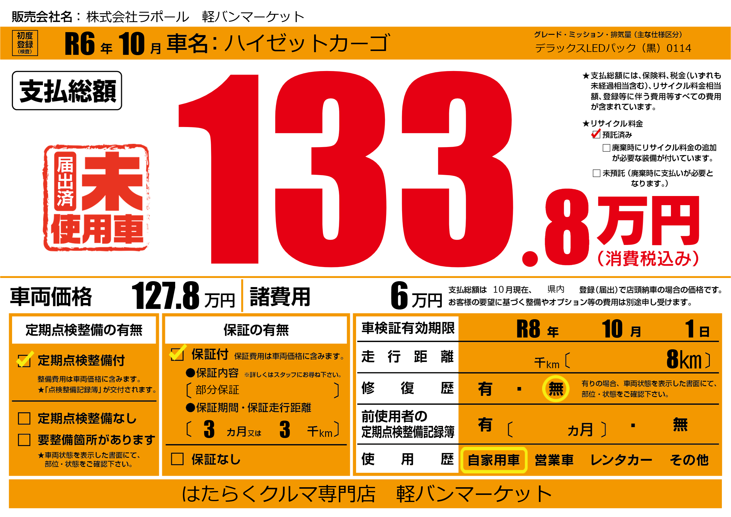 | 走行キロ | - | 初年度登録 | R6年10月 |
