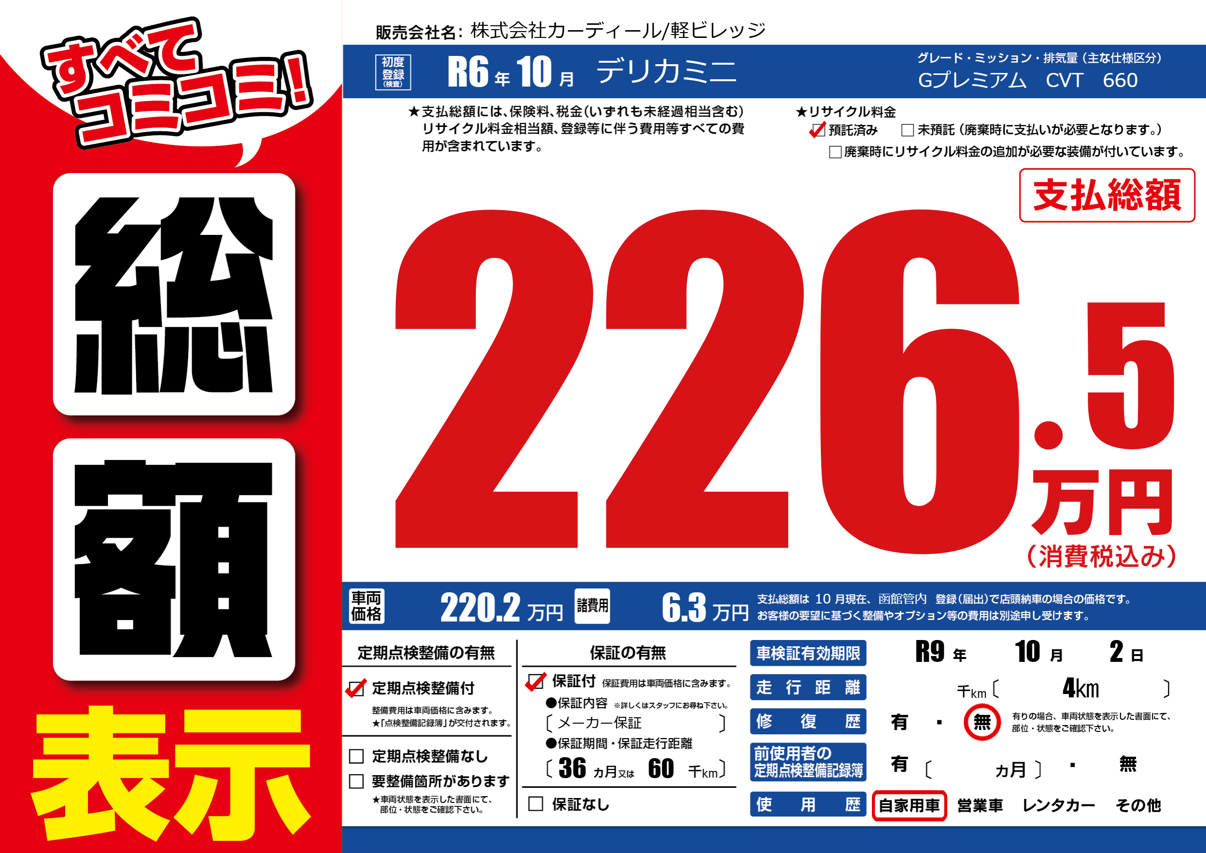 | 車名 | デリカミニ | グレード ミッション 排気量 |