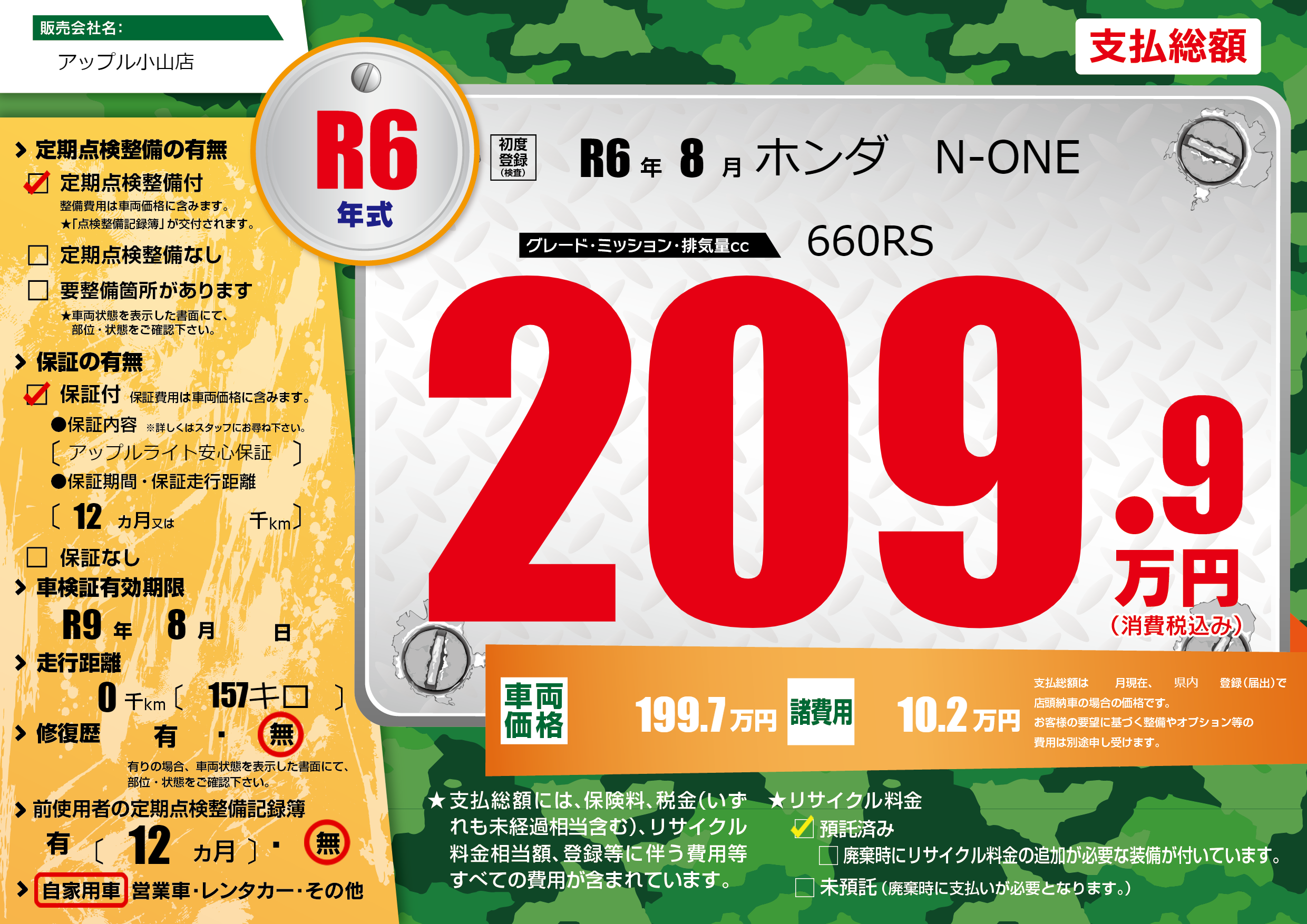 なし | 車検制限 | R9年8月---月 |