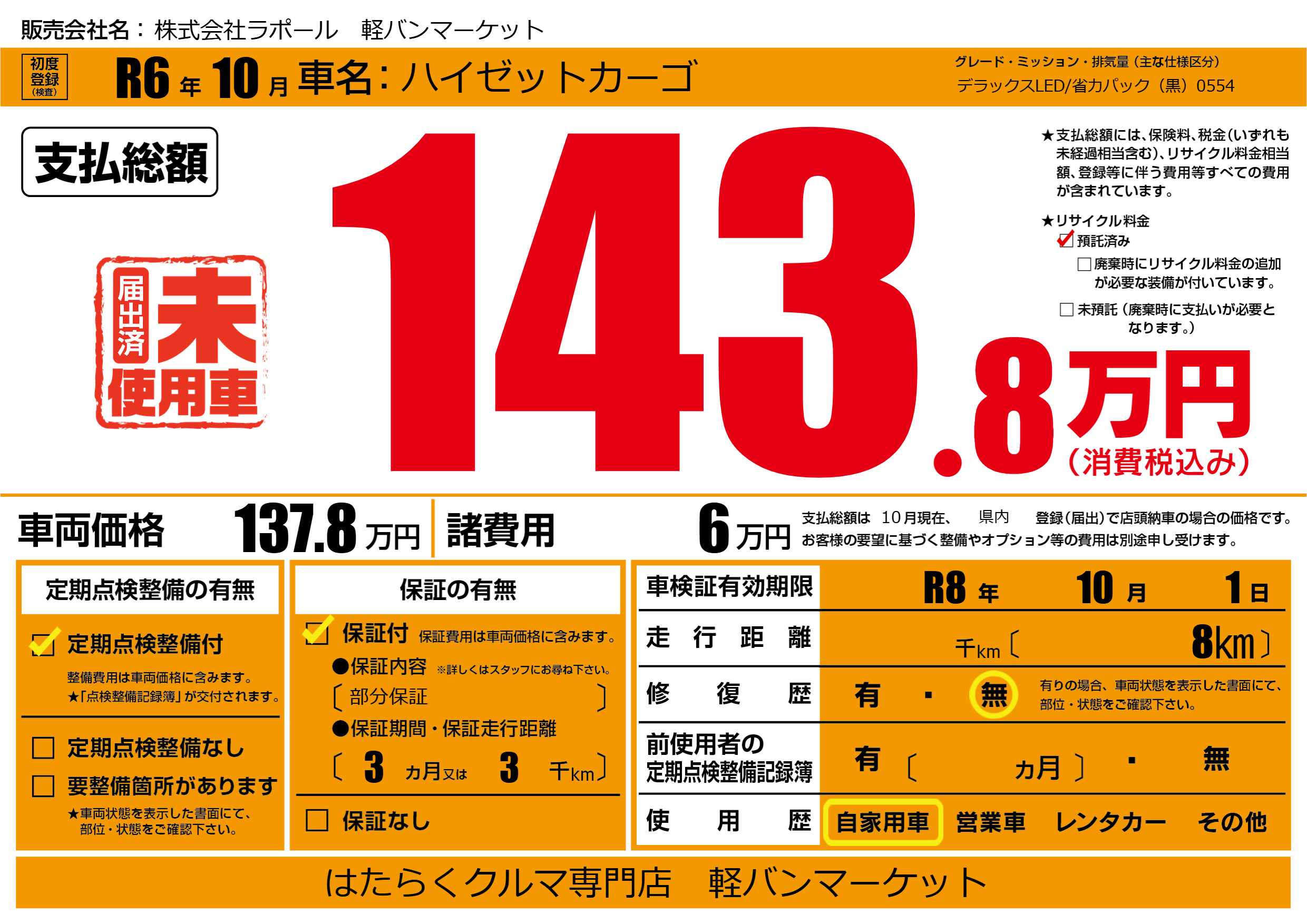 | 走行キロ | - | 初年度登録 | R6年10月 |