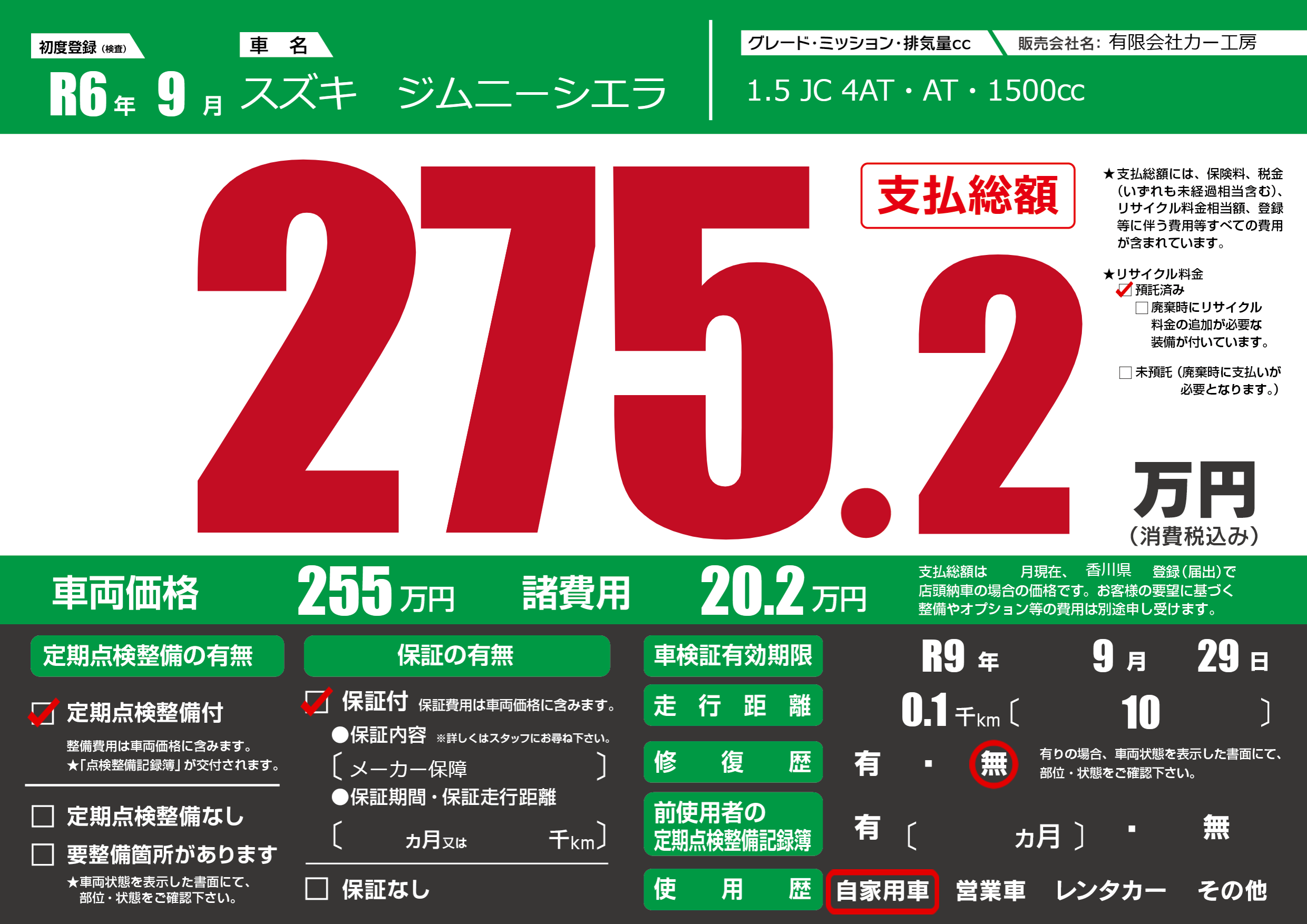 なし | 車検制限 | R9年9月29月 |