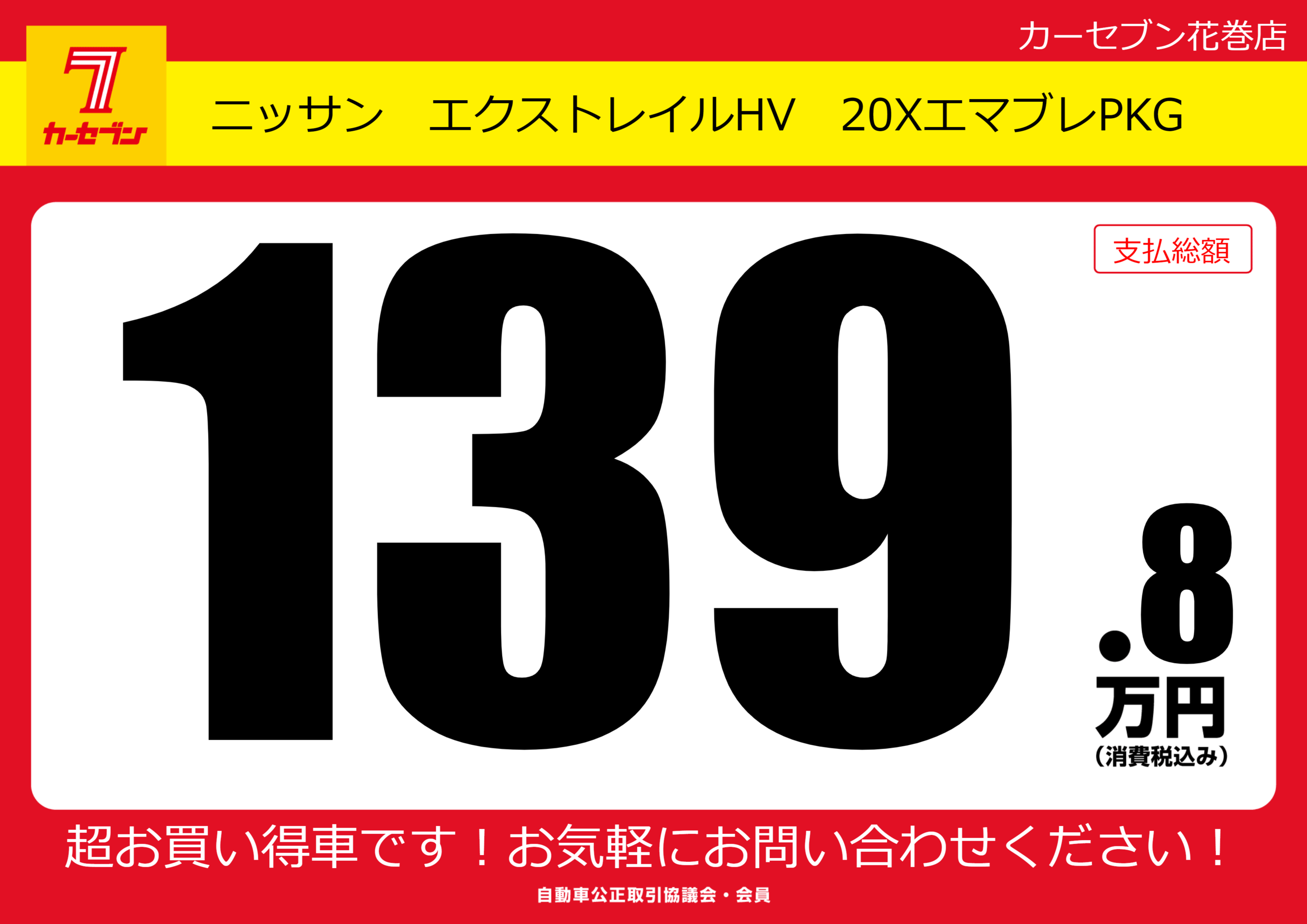 | 車名 | ニッサン エクストレイルHV 20XエマブレPKG | グレード ミッション 排気量 |
