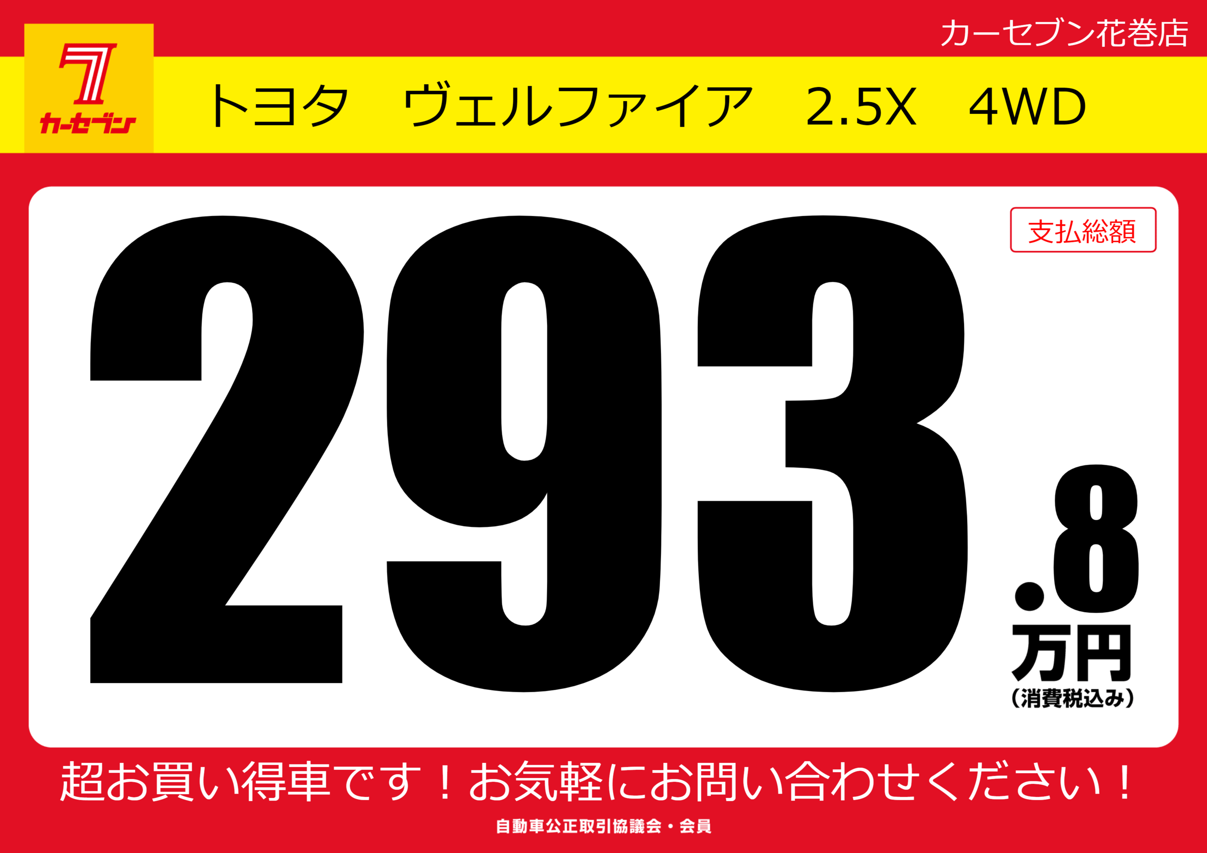 | 車名 | トヨタ ヴェルファイア 2.5X 4WD | グレード ミッション 排気量 |