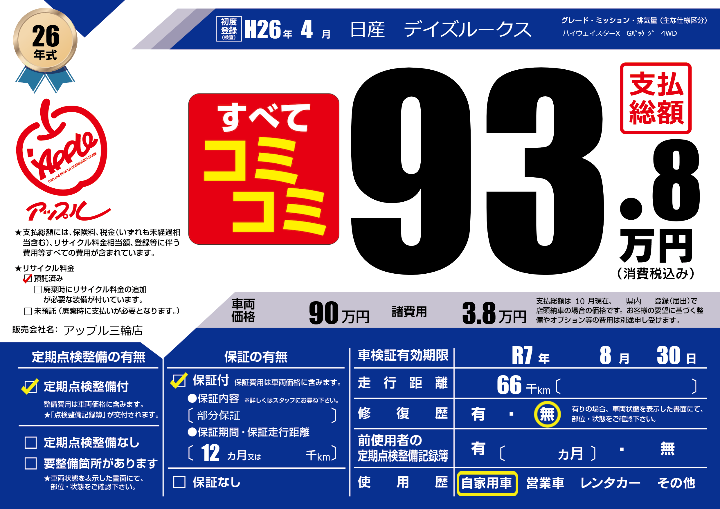 なし | 車検制限 | R7年8月30月 |