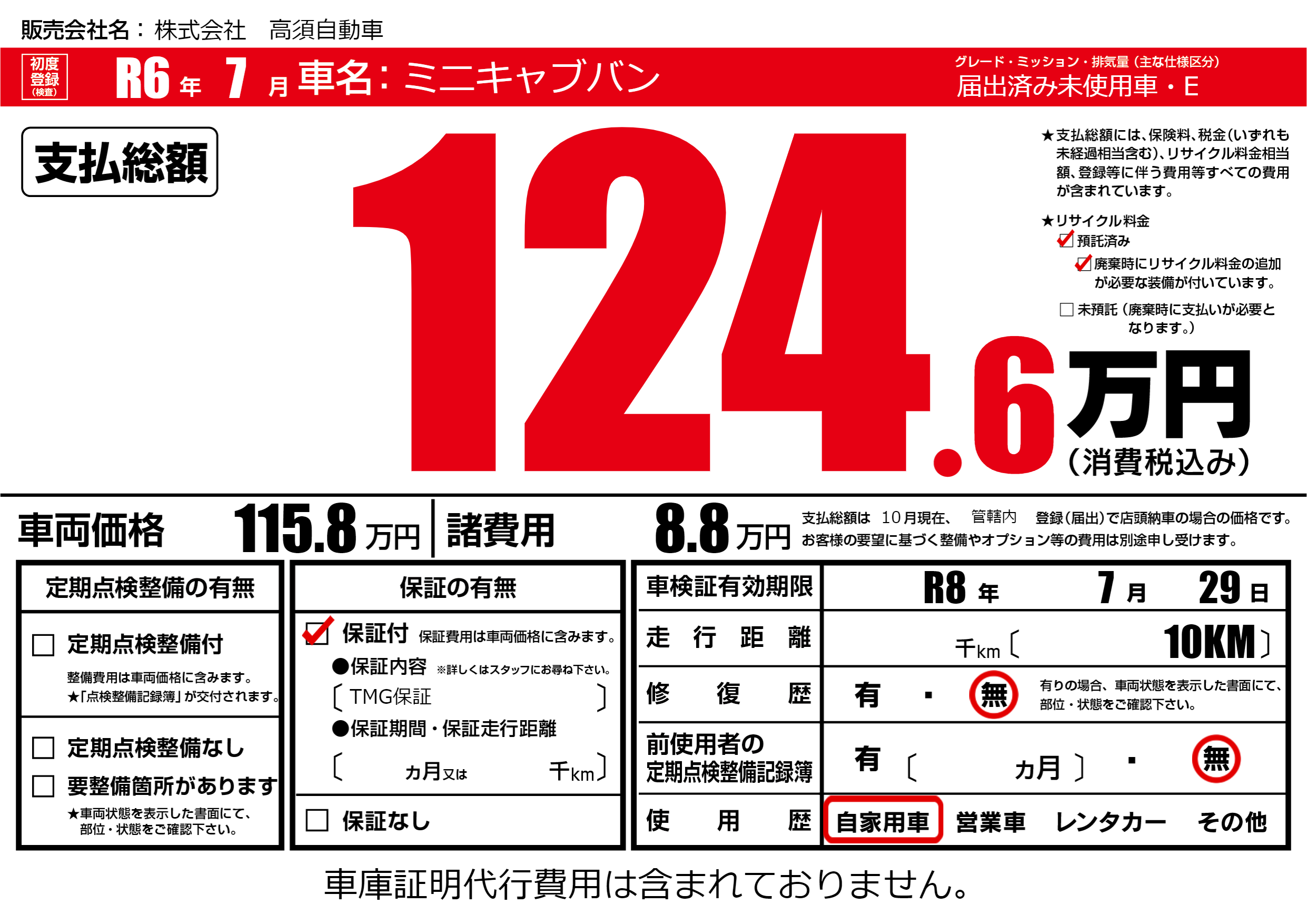 保証付き 保証内容(TMG保証) ---ヶ月または()千kmまで |