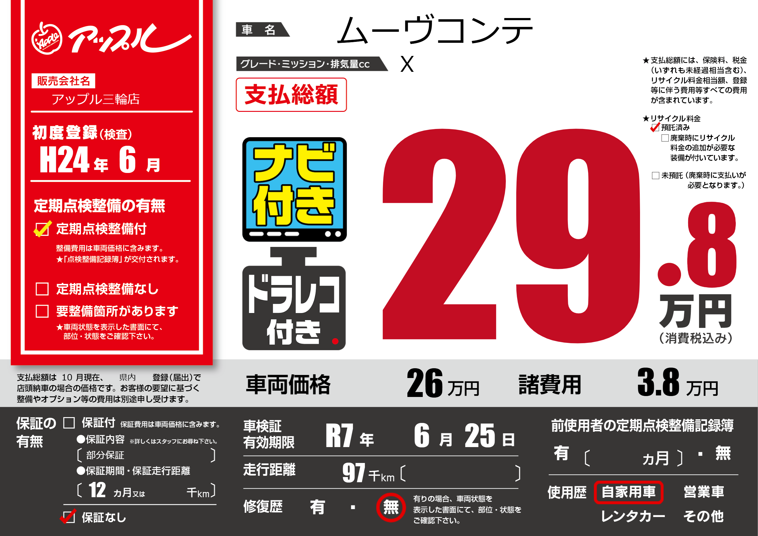 なし | 車検制限 | R7年6月25月 |