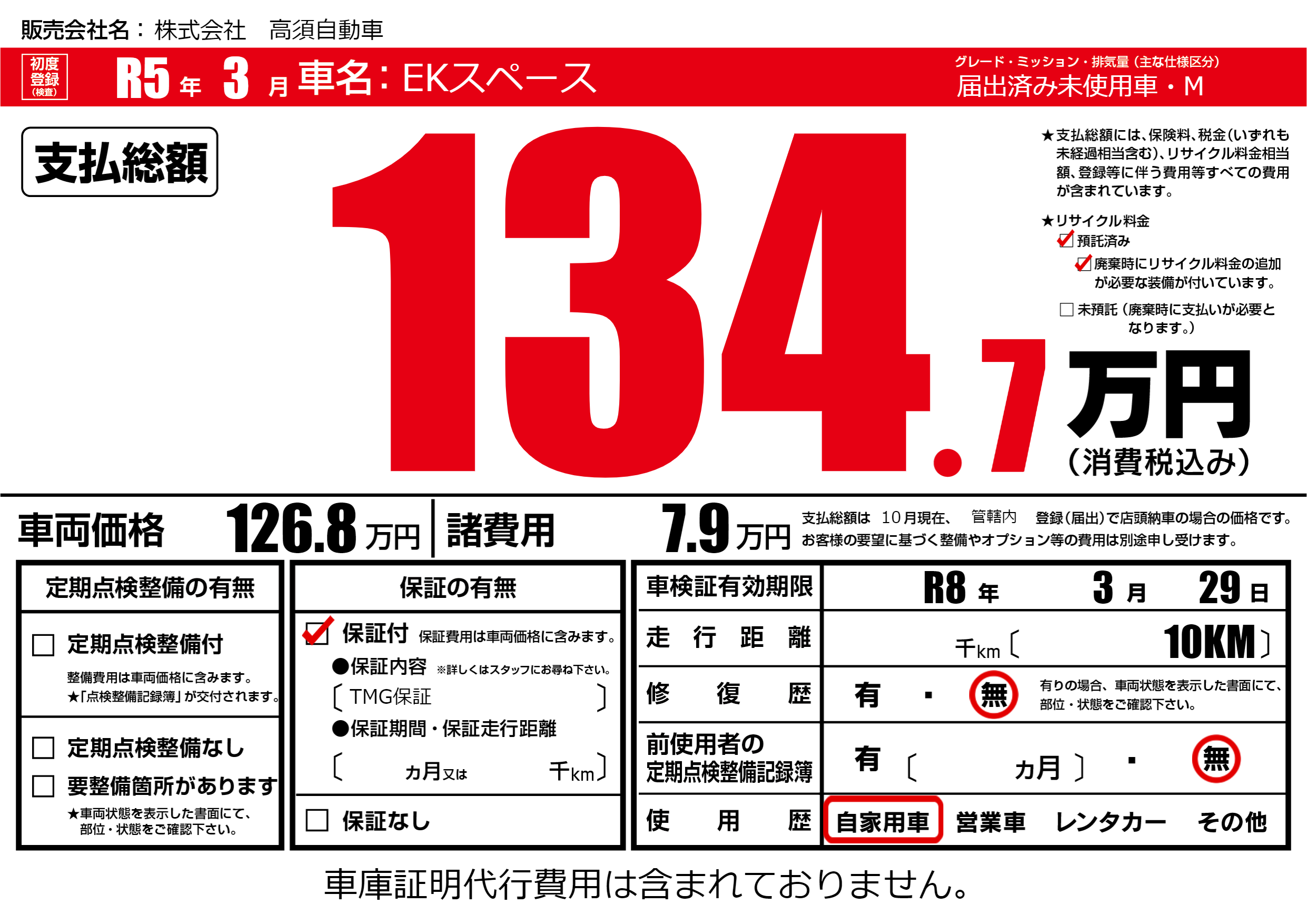 保証付き 保証内容(TMG保証) ---ヶ月または()千kmまで |