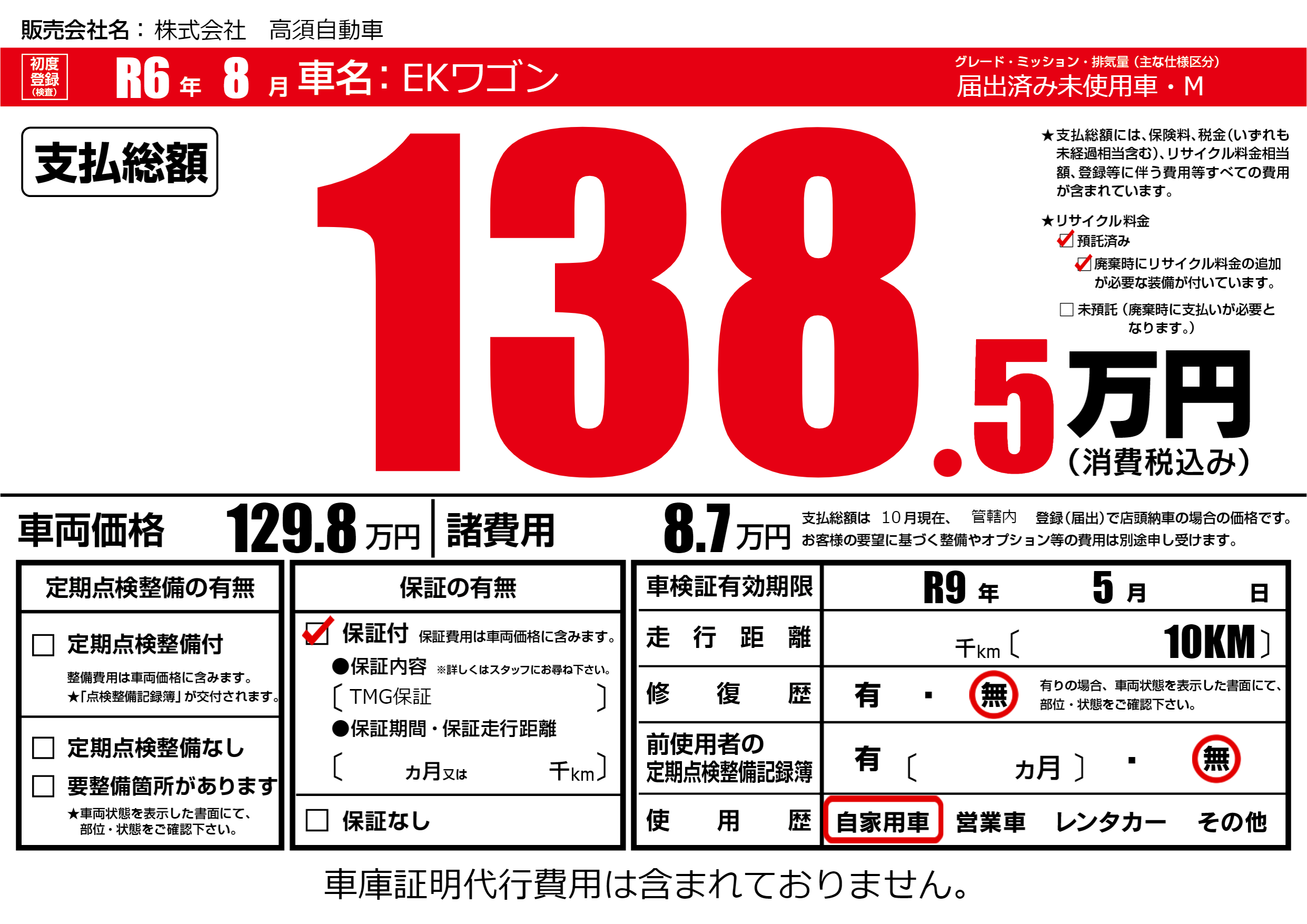 保証付き 保証内容(TMG保証) ---ヶ月または()千kmまで |