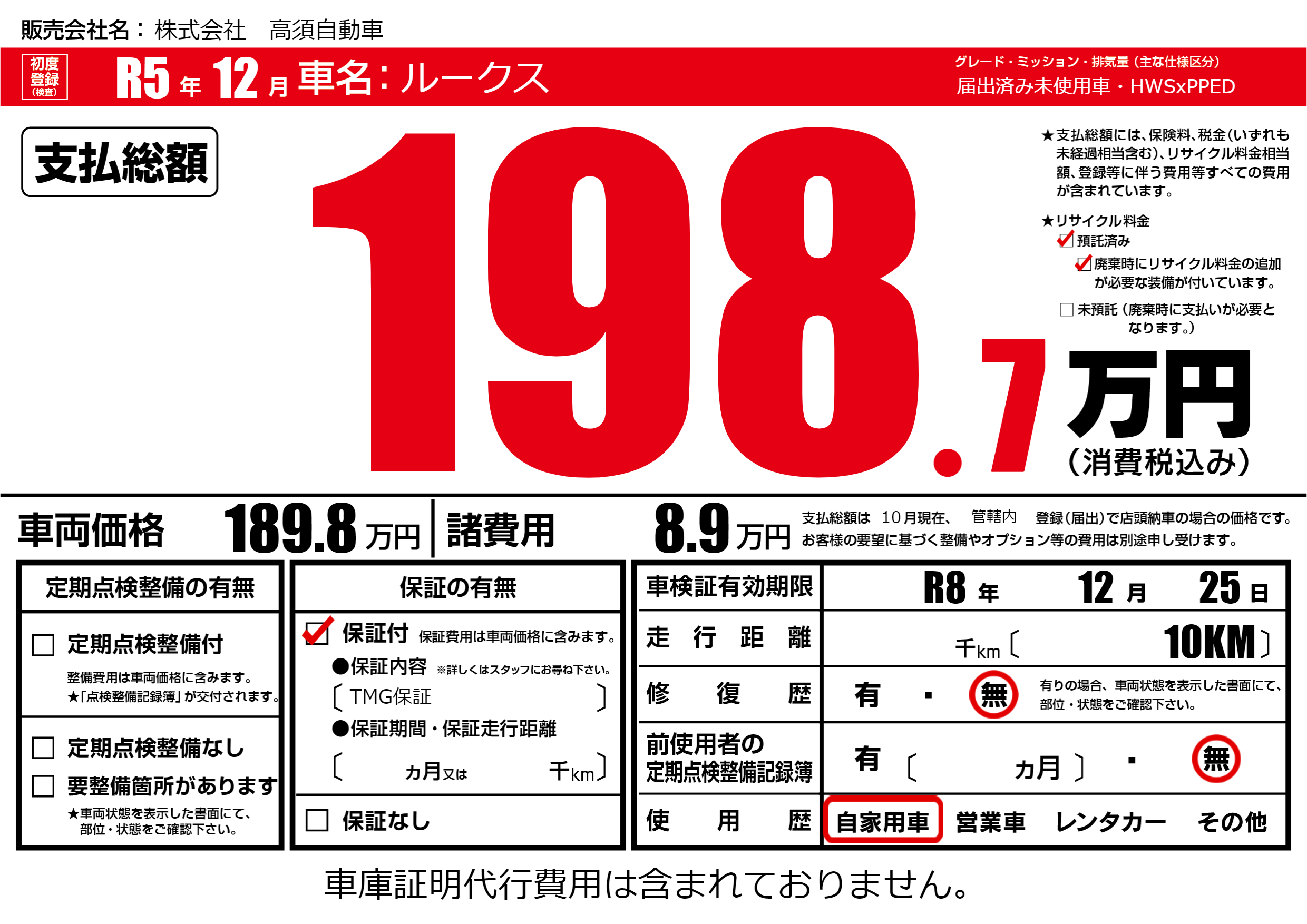 | 走行キロ | - | 初年度登録 | R5年12月 |