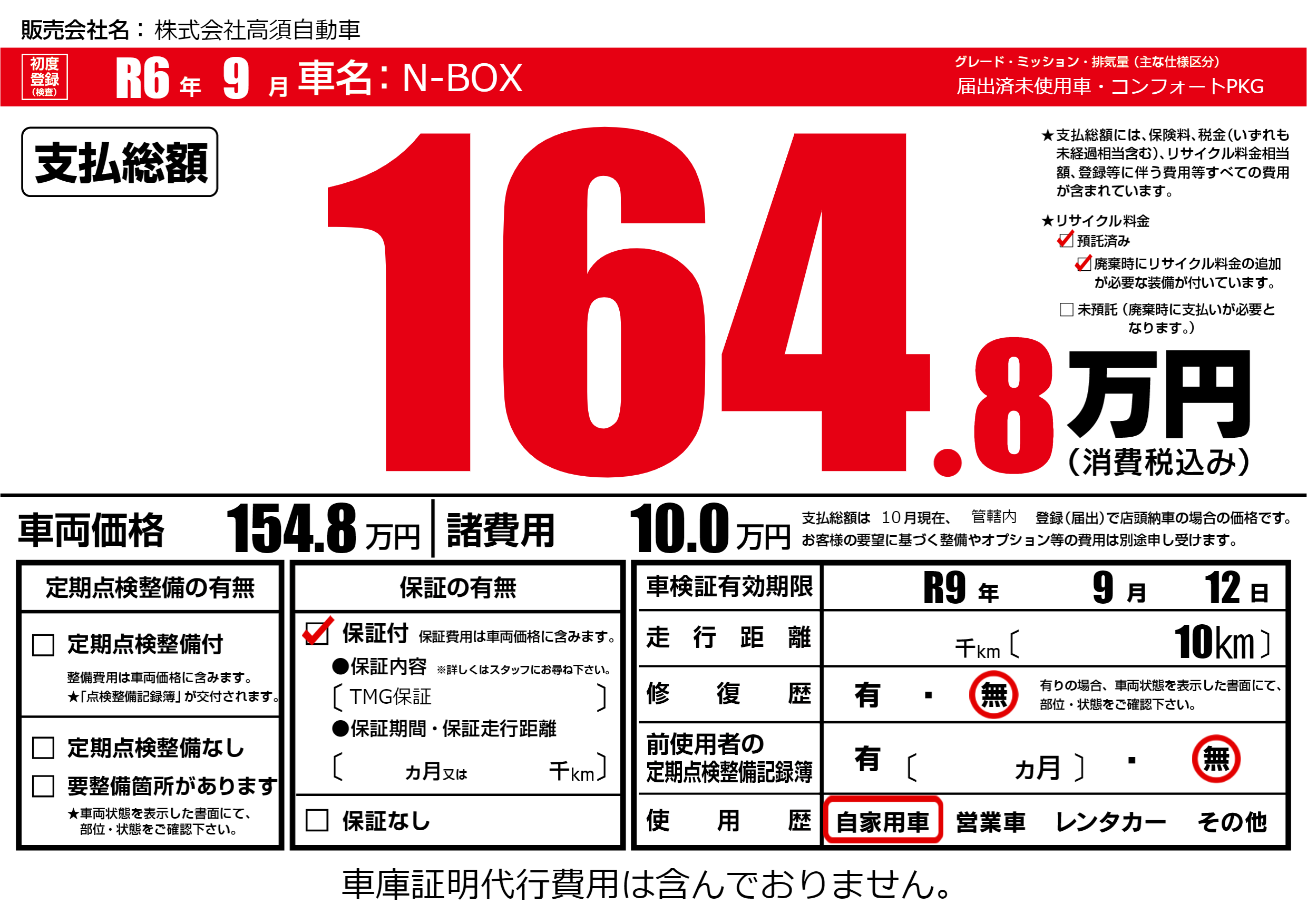 なし | 車検制限 | R9年9月12月 |