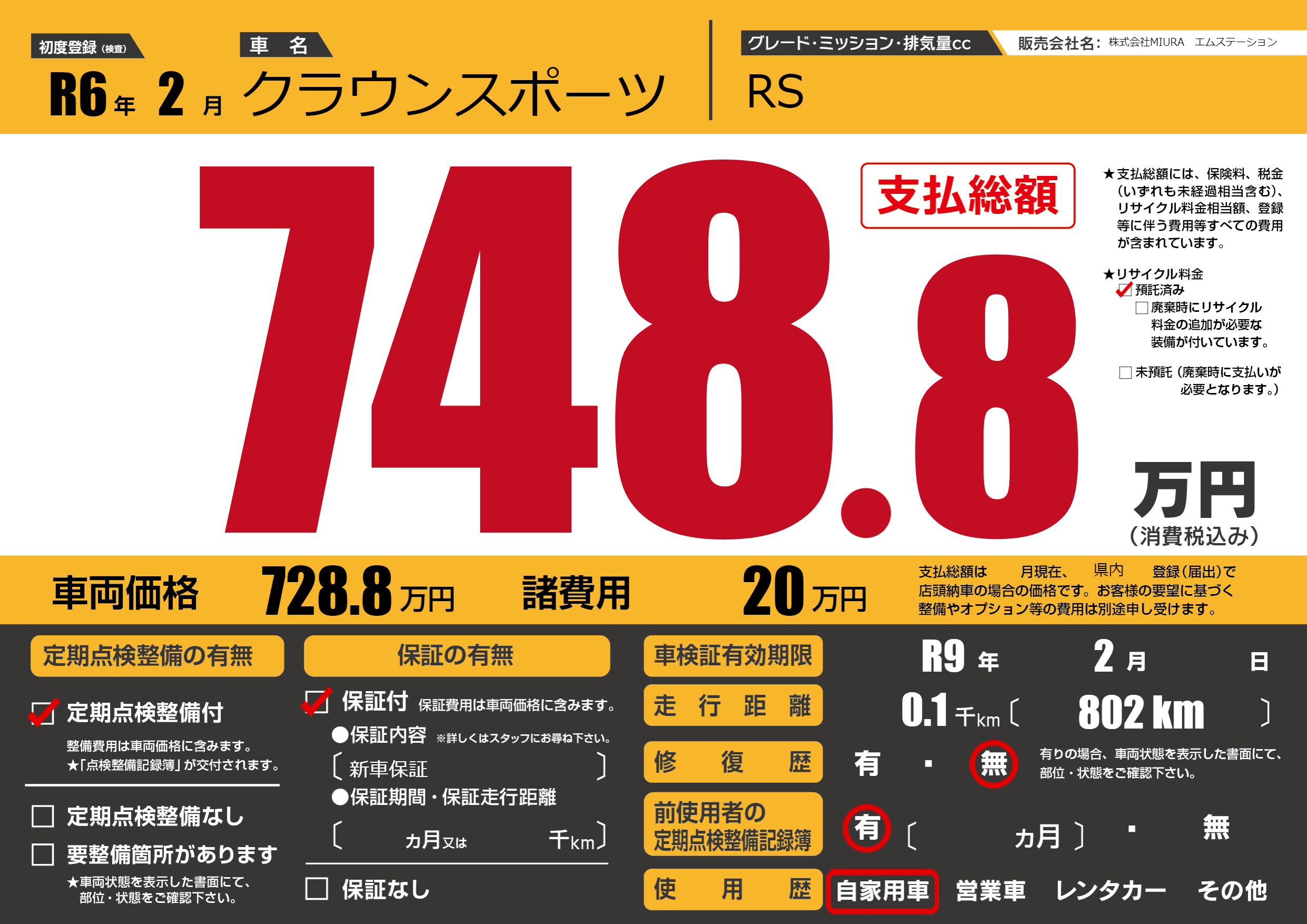 | 走行キロ | - | 初年度登録 | R6年2月 |