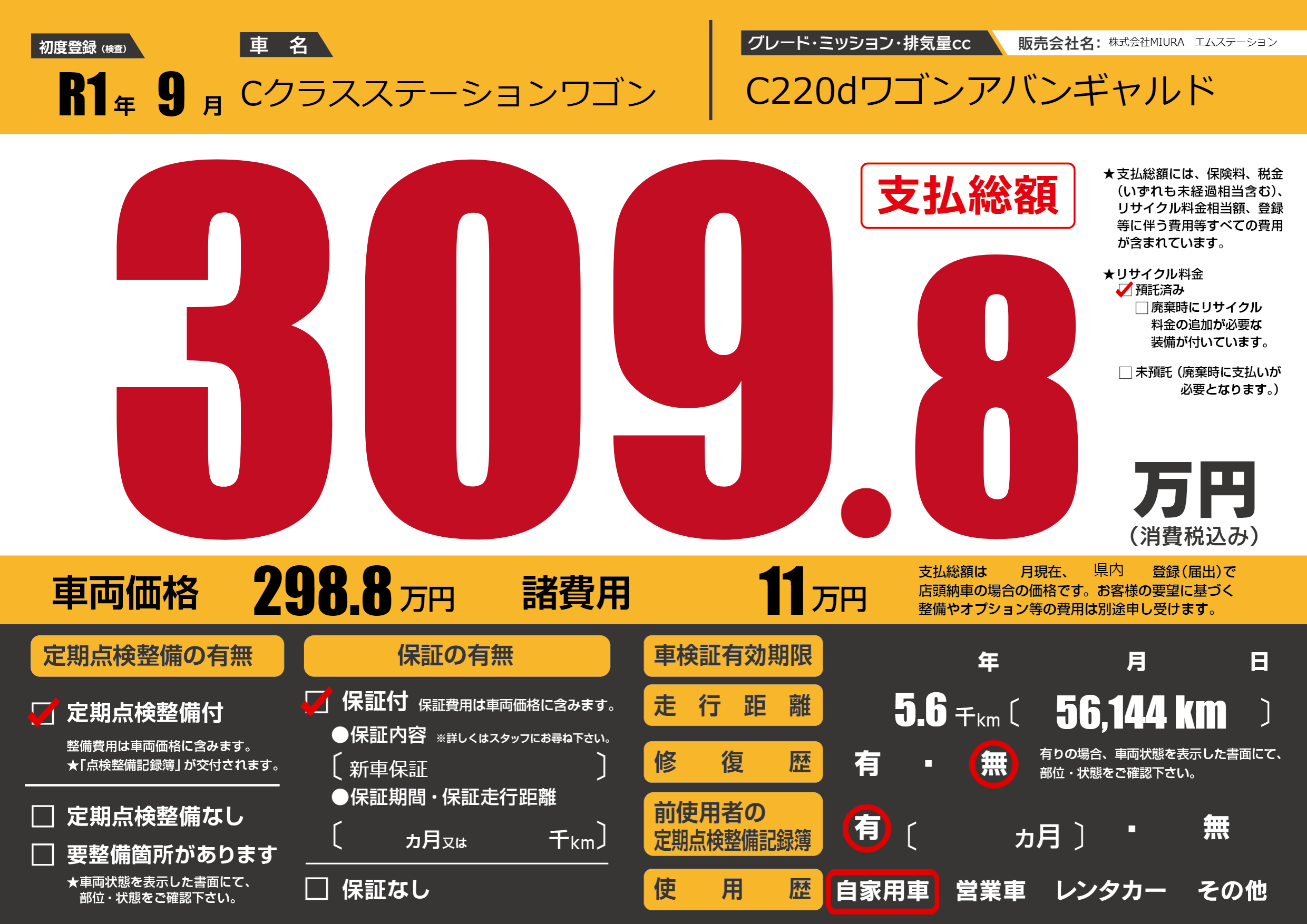 | 初年度登録 | R1年9月 | ||