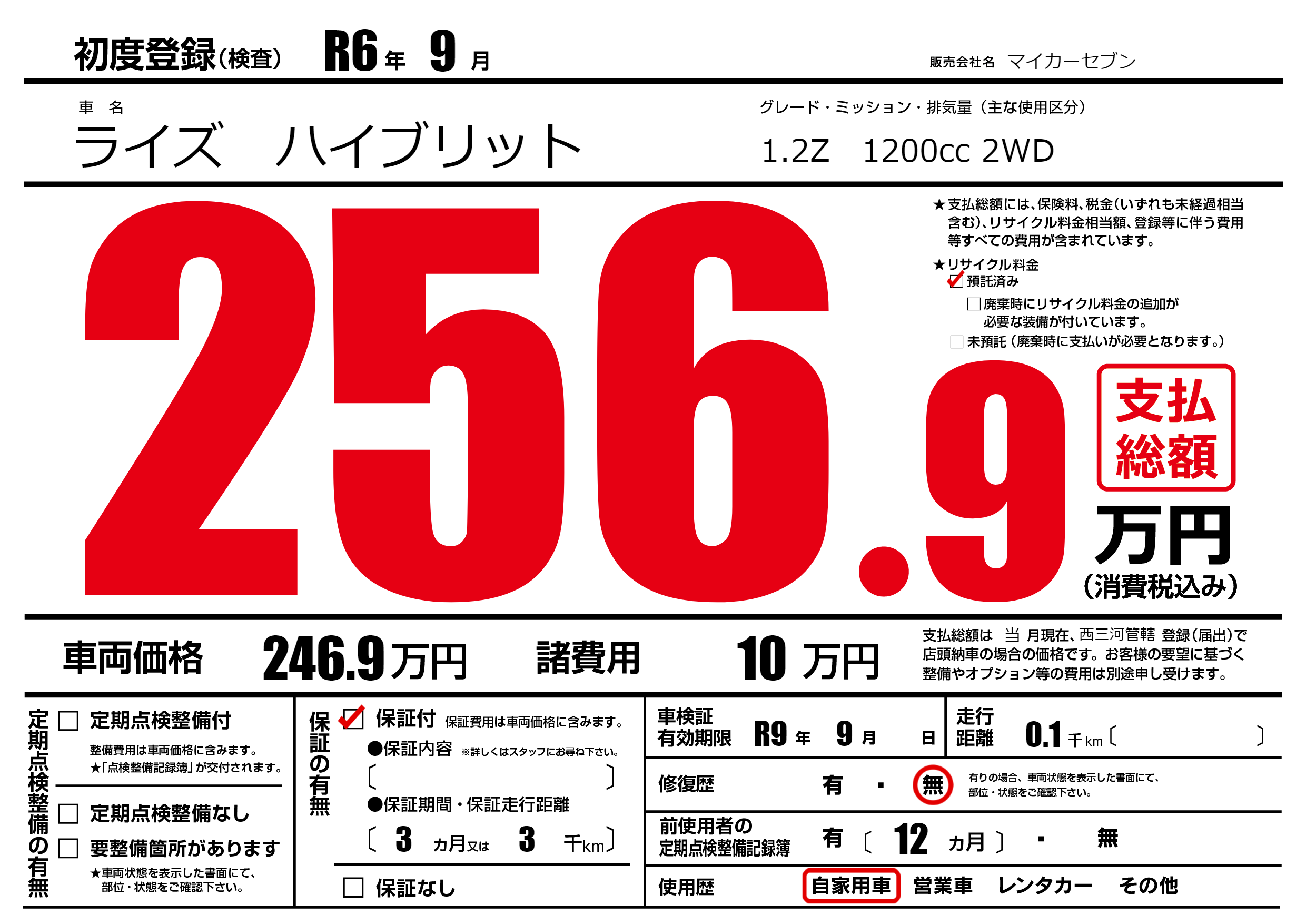 | 車名 | ライズ ハイブリット | グレード ミッション 排気量 |