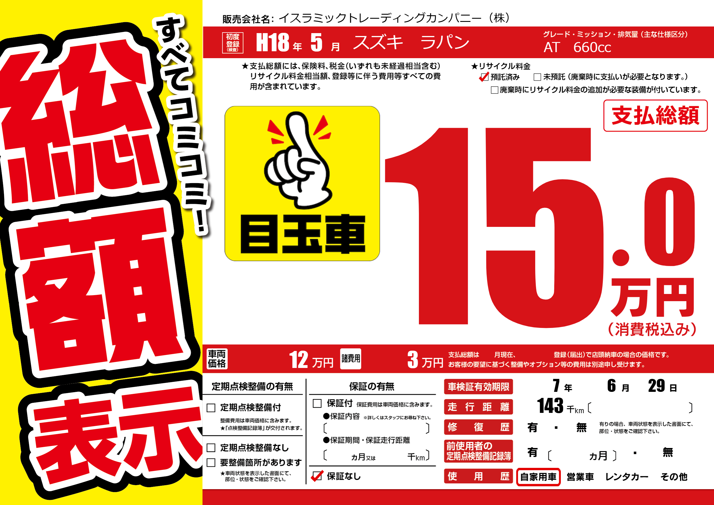 | 車検制限 | 7年 6月 29日 | ||