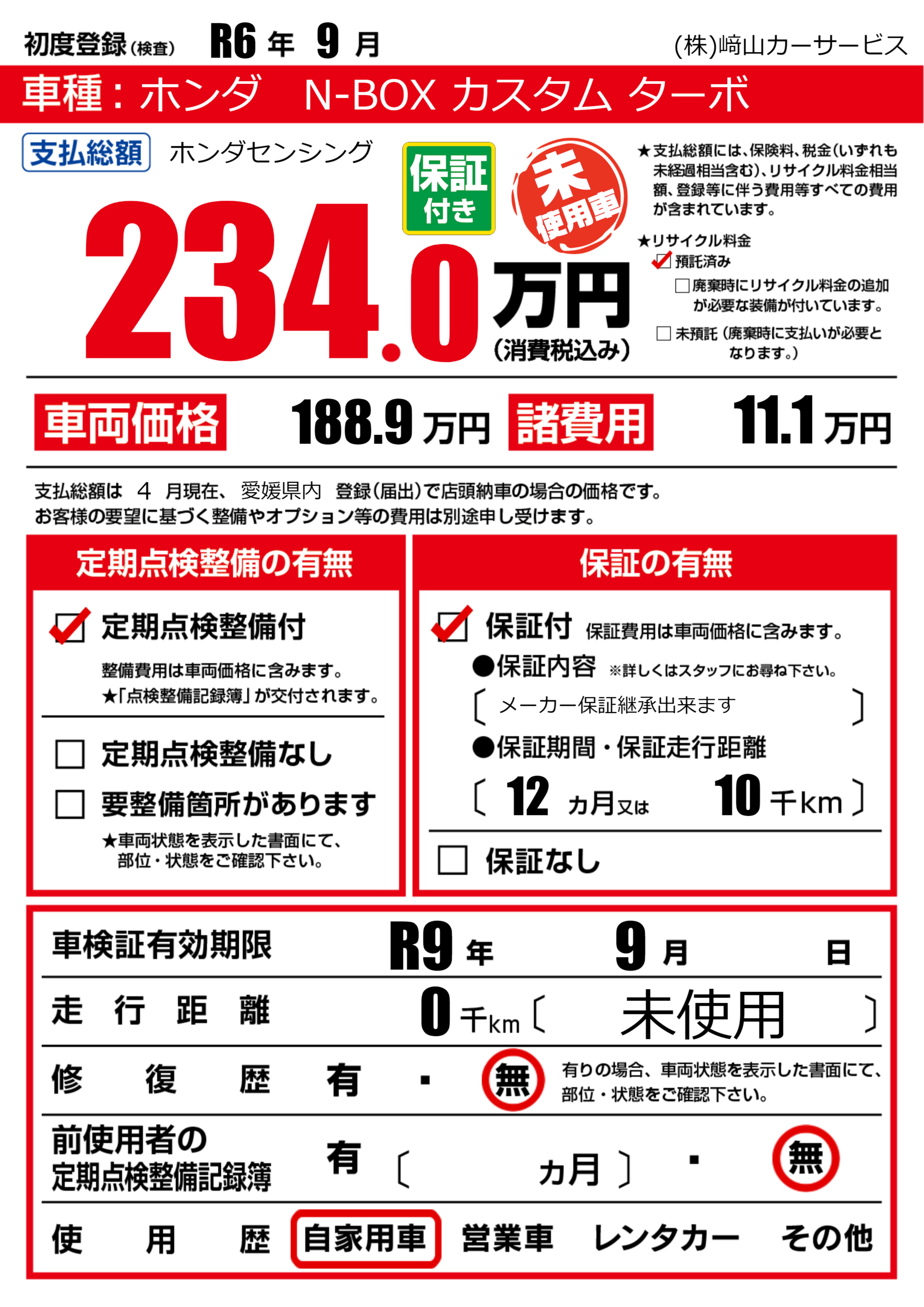 なし | 車検制限 | R9年9月---月 |