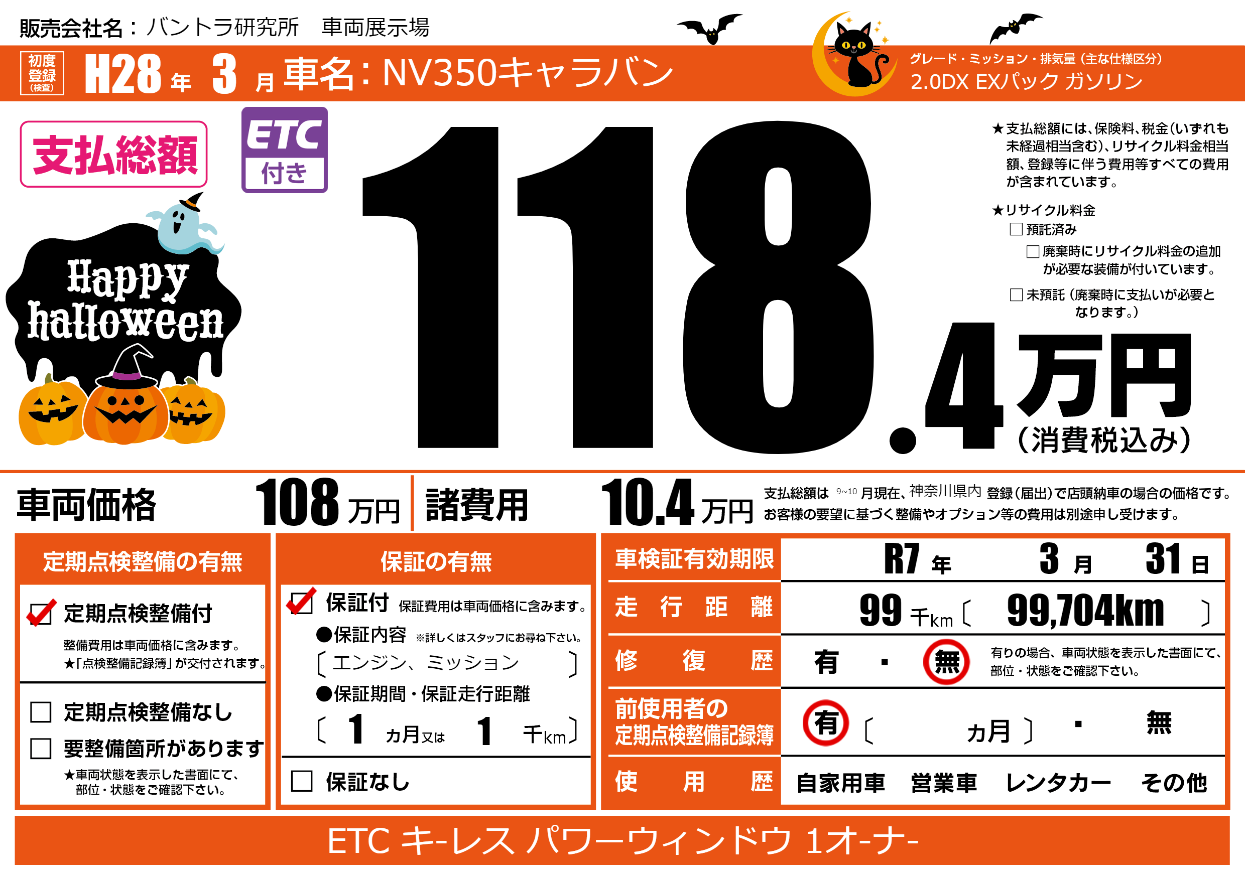 | 走行キロ | 9.9万km | 初年度登録 | H28年3月 |