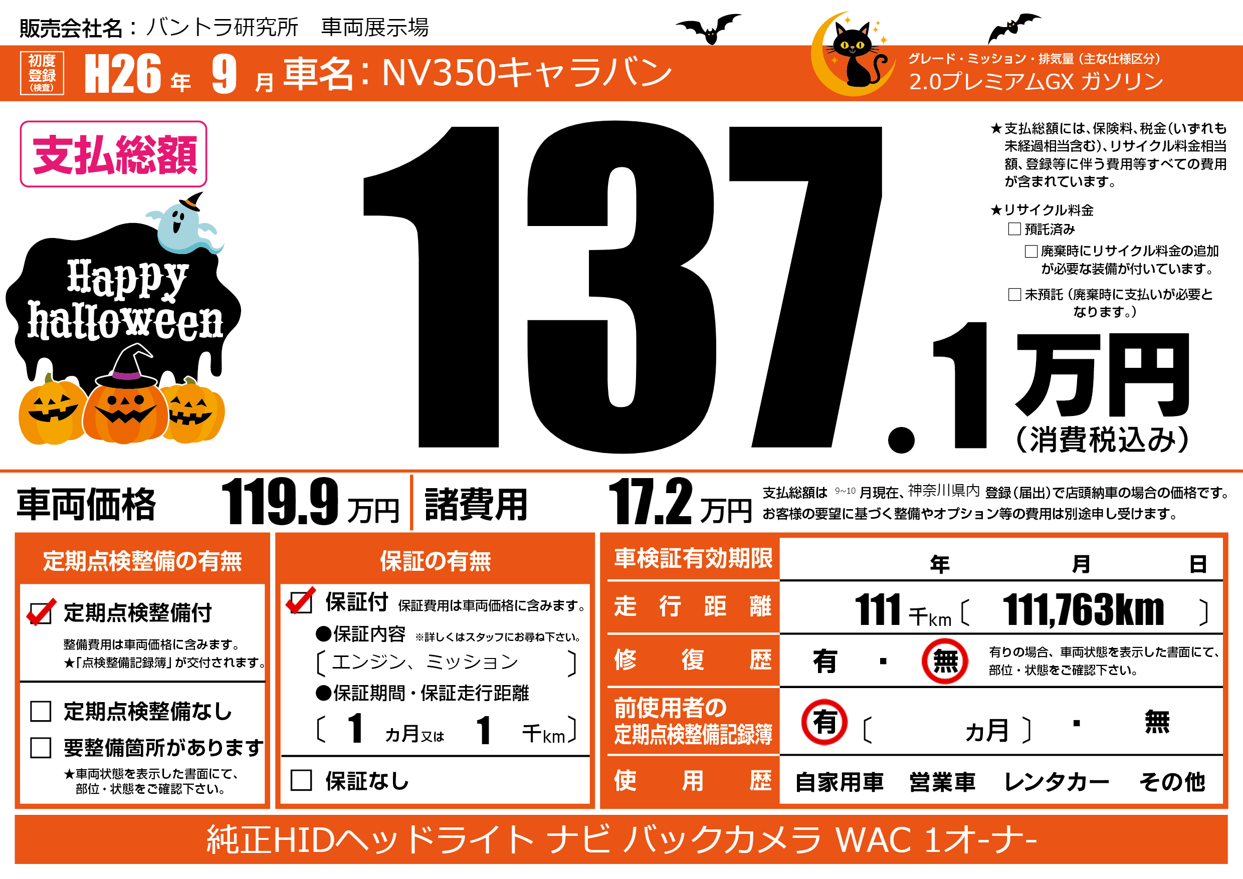 | 走行キロ | 11.1万km | 初年度登録 | H26年9月 |