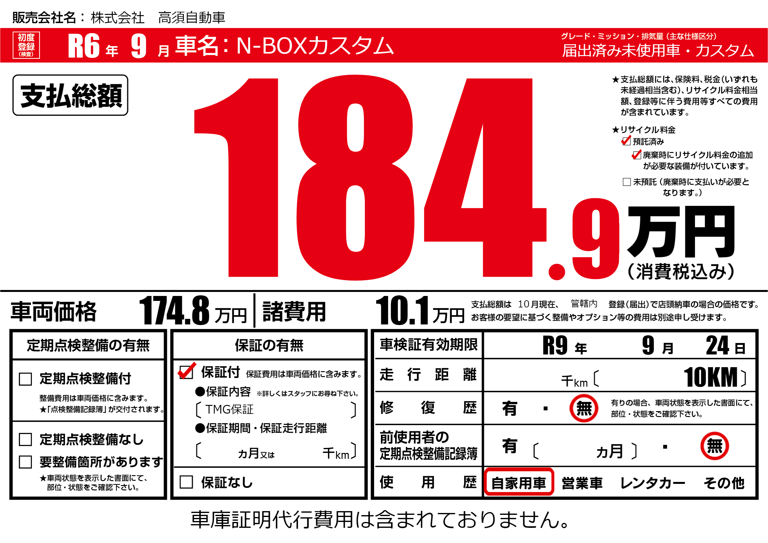 保証付き 保証内容(TMG保証) ---ヶ月または()千kmまで |