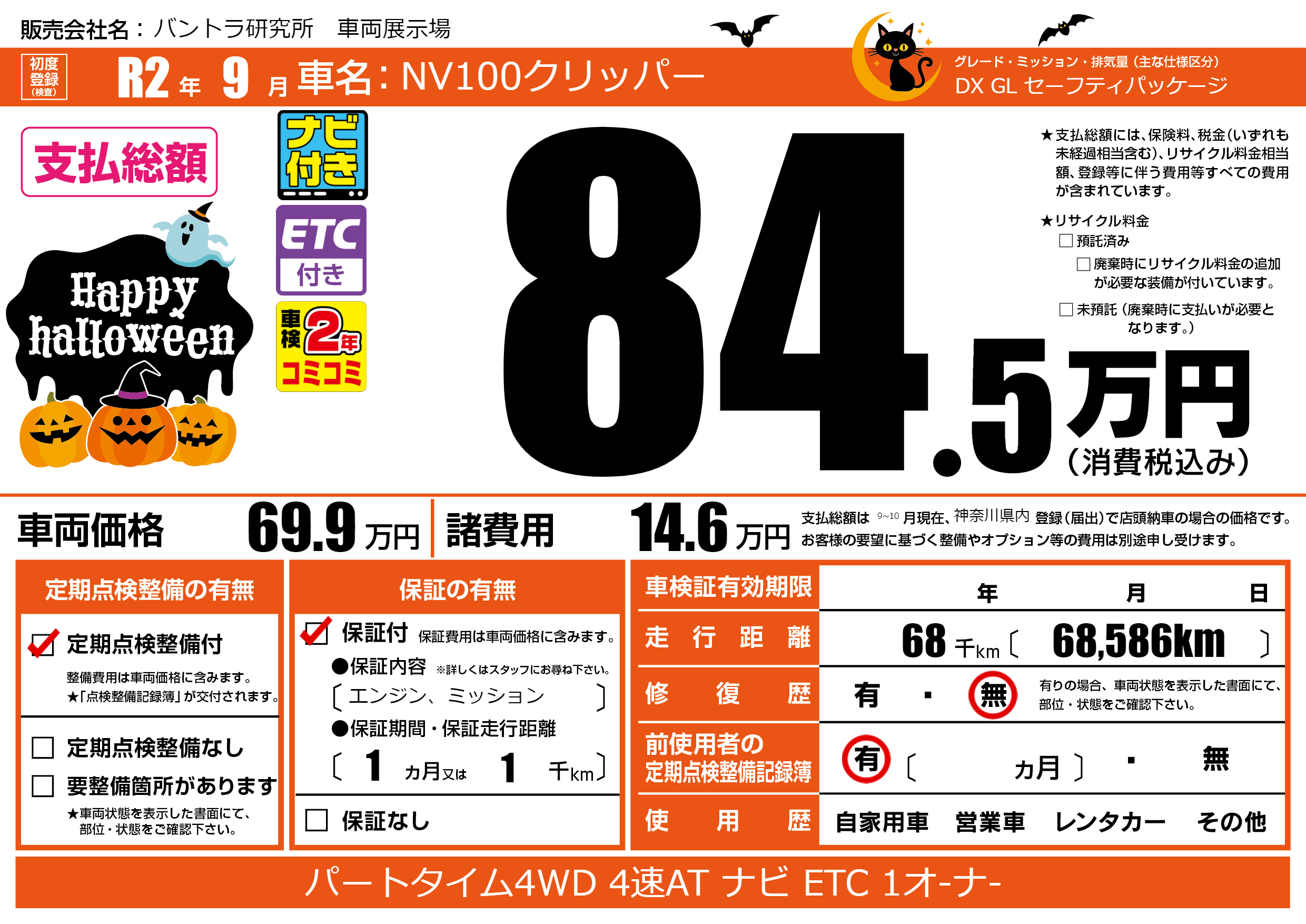 | 車名 | NV100クリッパー | グレード ミッション 排気量 |