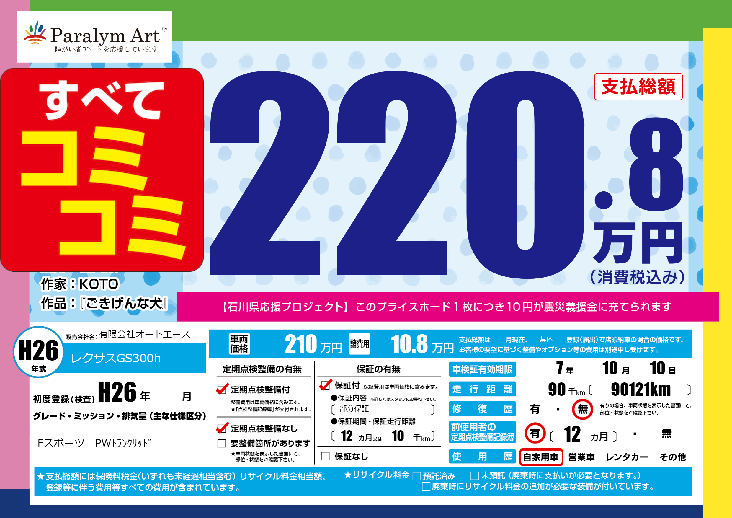 | 車名 | レクサスGS300h | グレード ミッション 排気量 |
