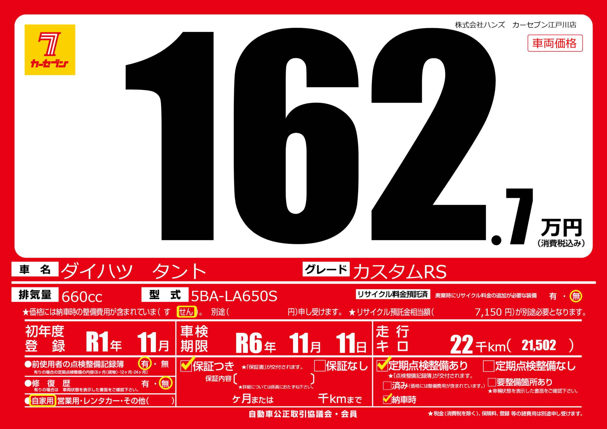 なし | 車検制限 | R6年11月11月 |