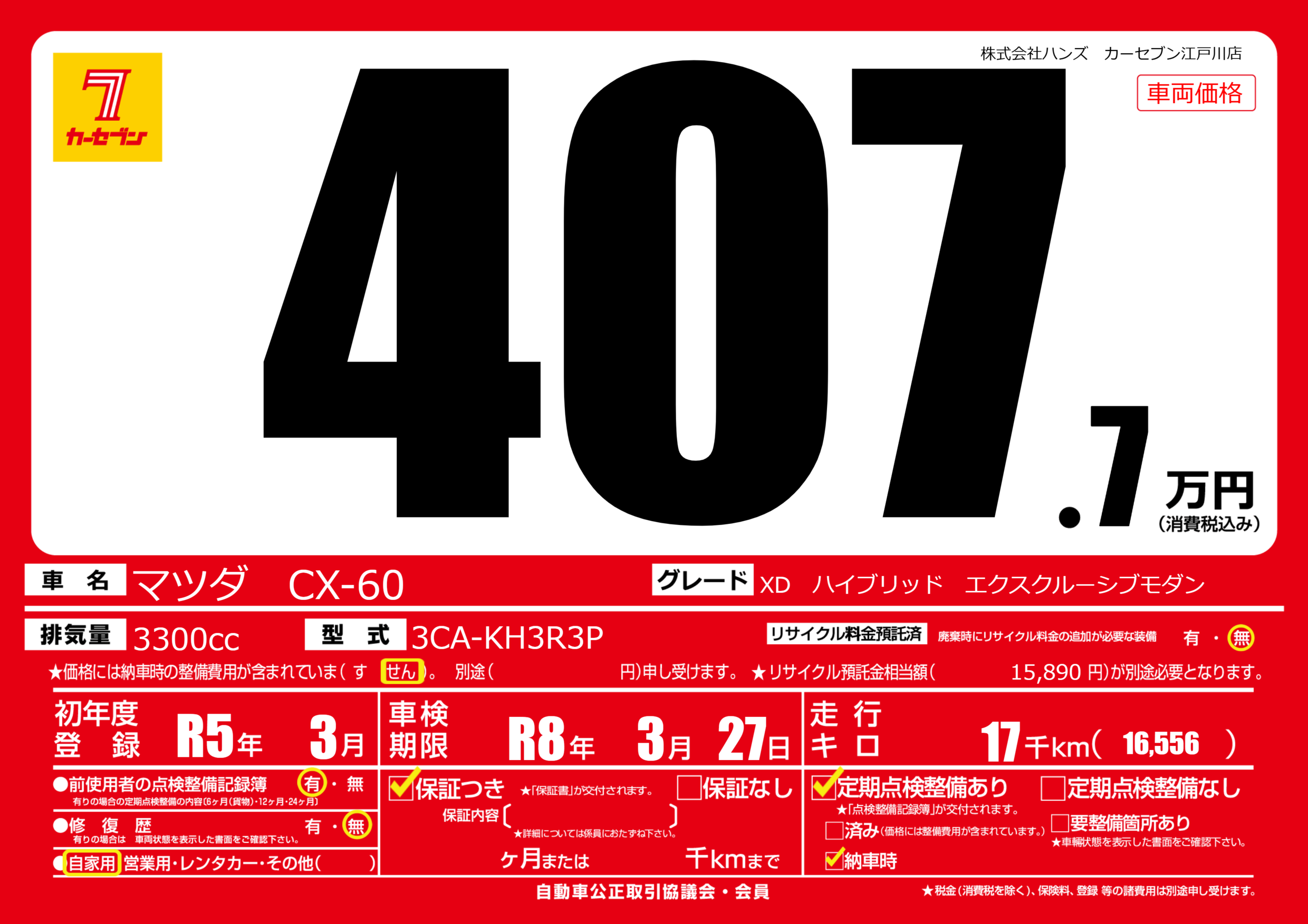 | 車検制限 | R8年 3月 27日 | ||