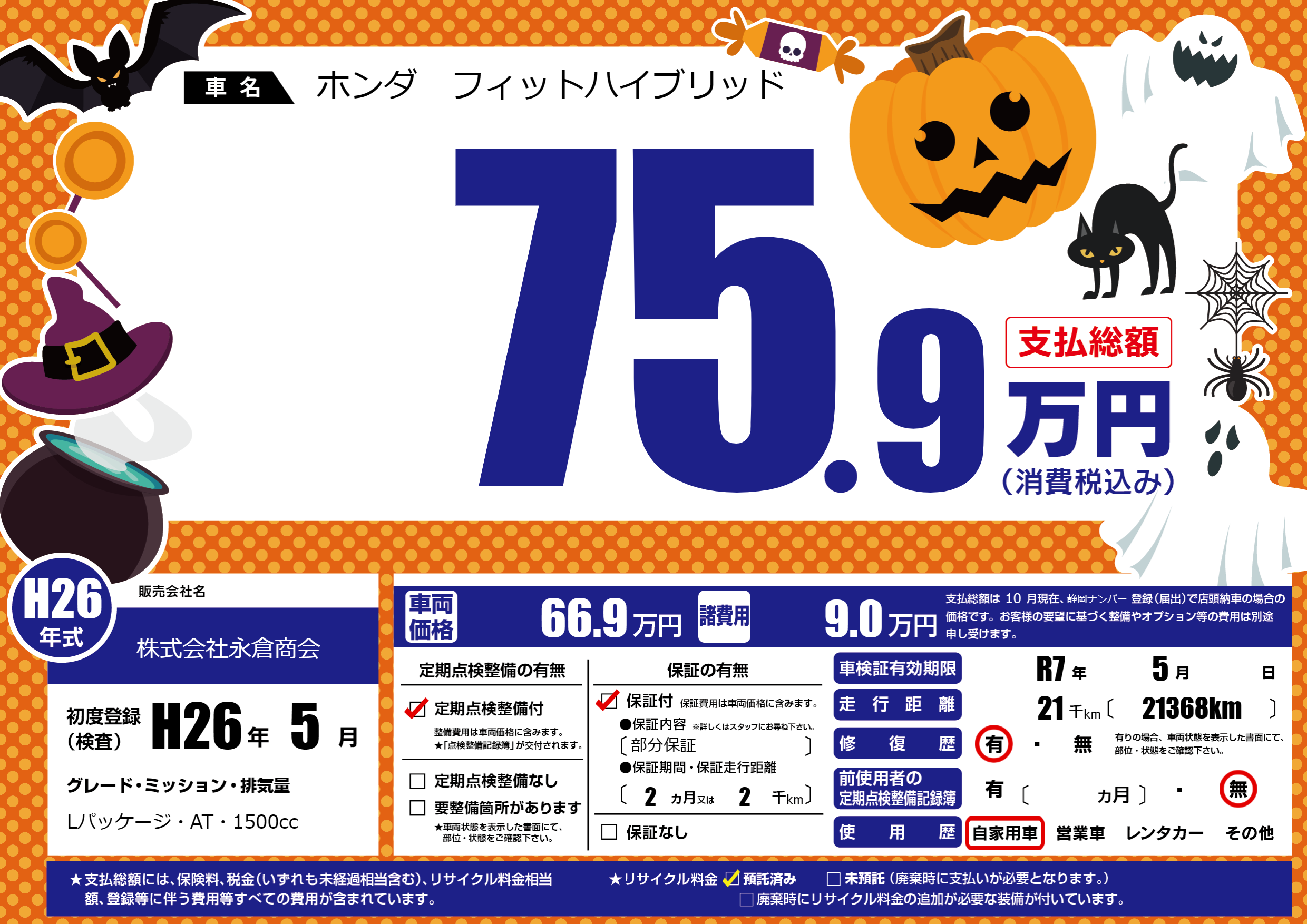 なし | 車検制限 | R7年5月---月 |