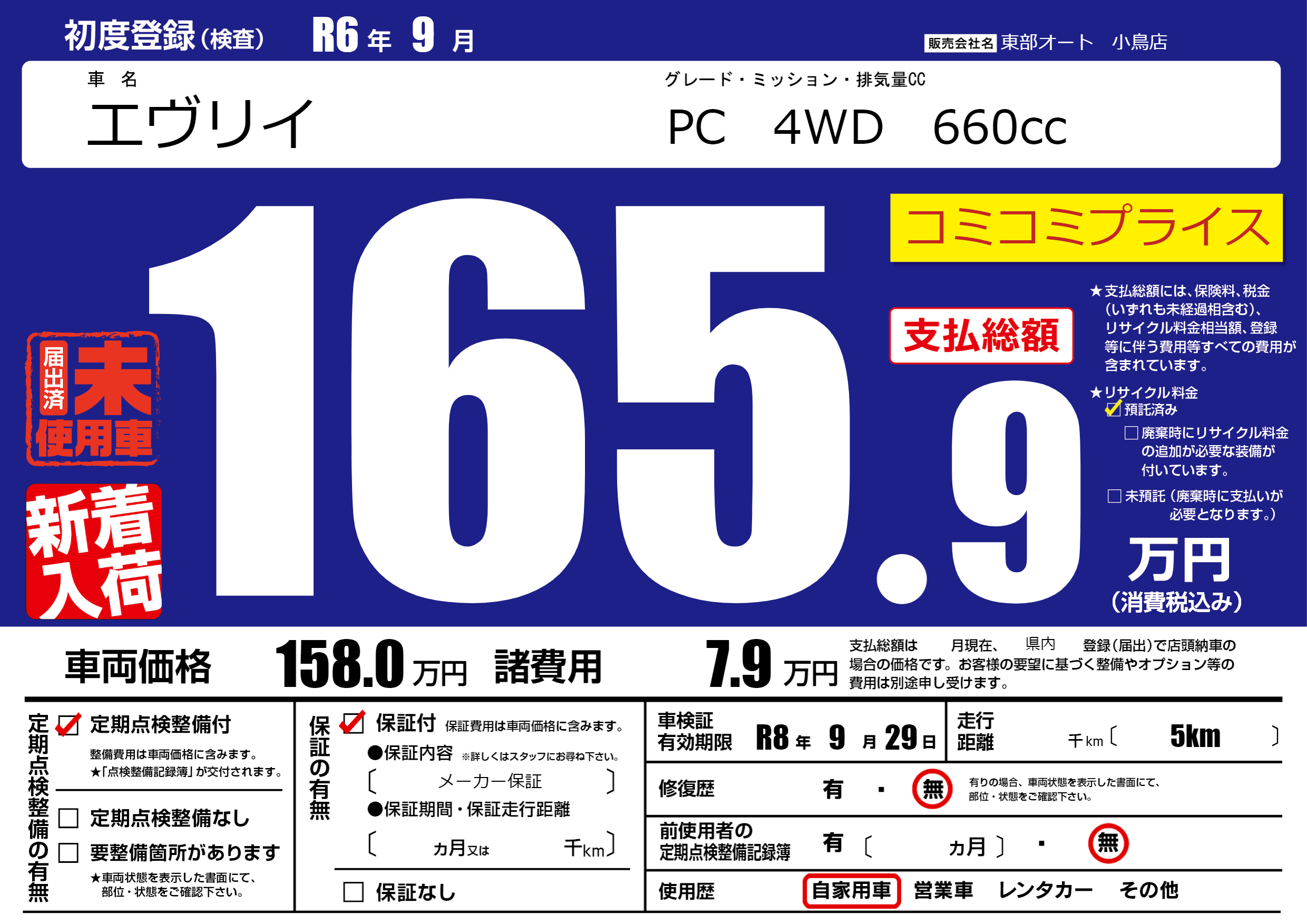 | 走行キロ | - | 初年度登録 | R6年9月 |