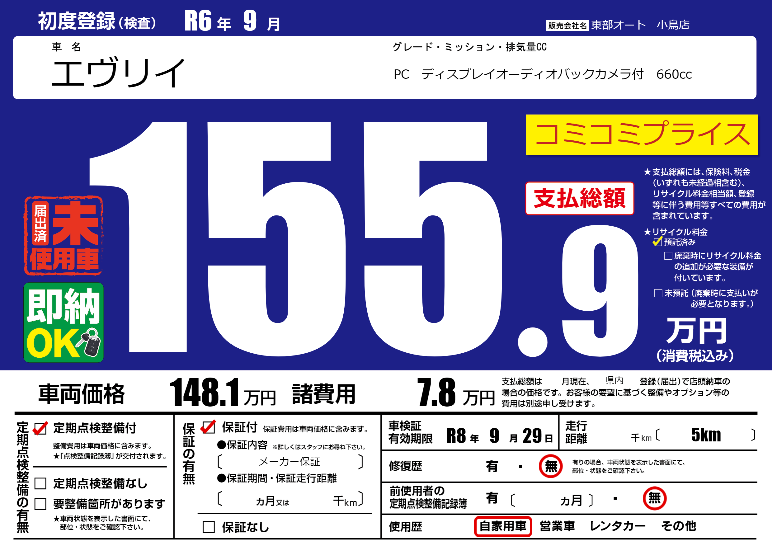 | 車検制限 | R8年 9月 29日 | ||