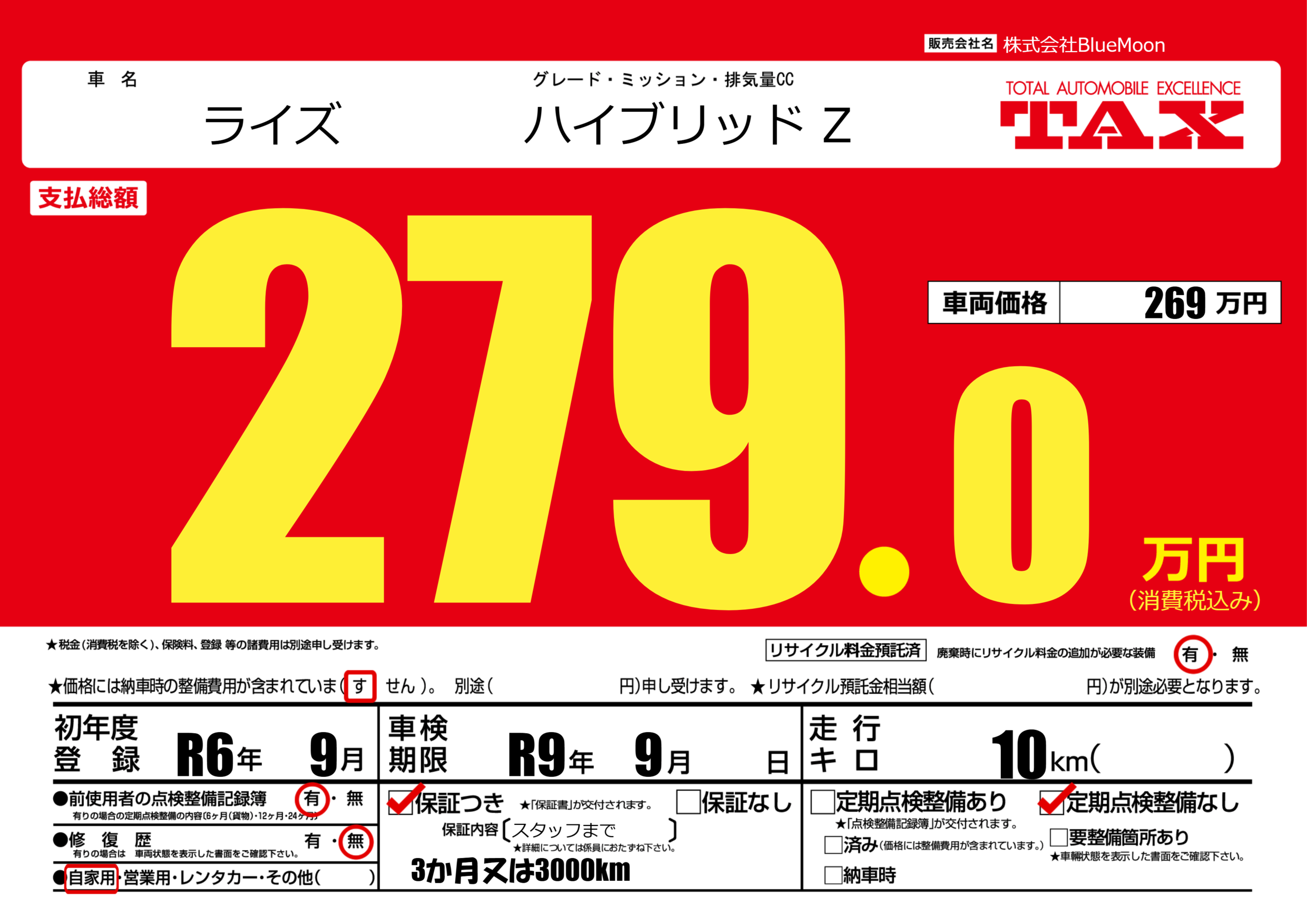 | 走行キロ | 1万km | 初年度登録 | R6年9月 |