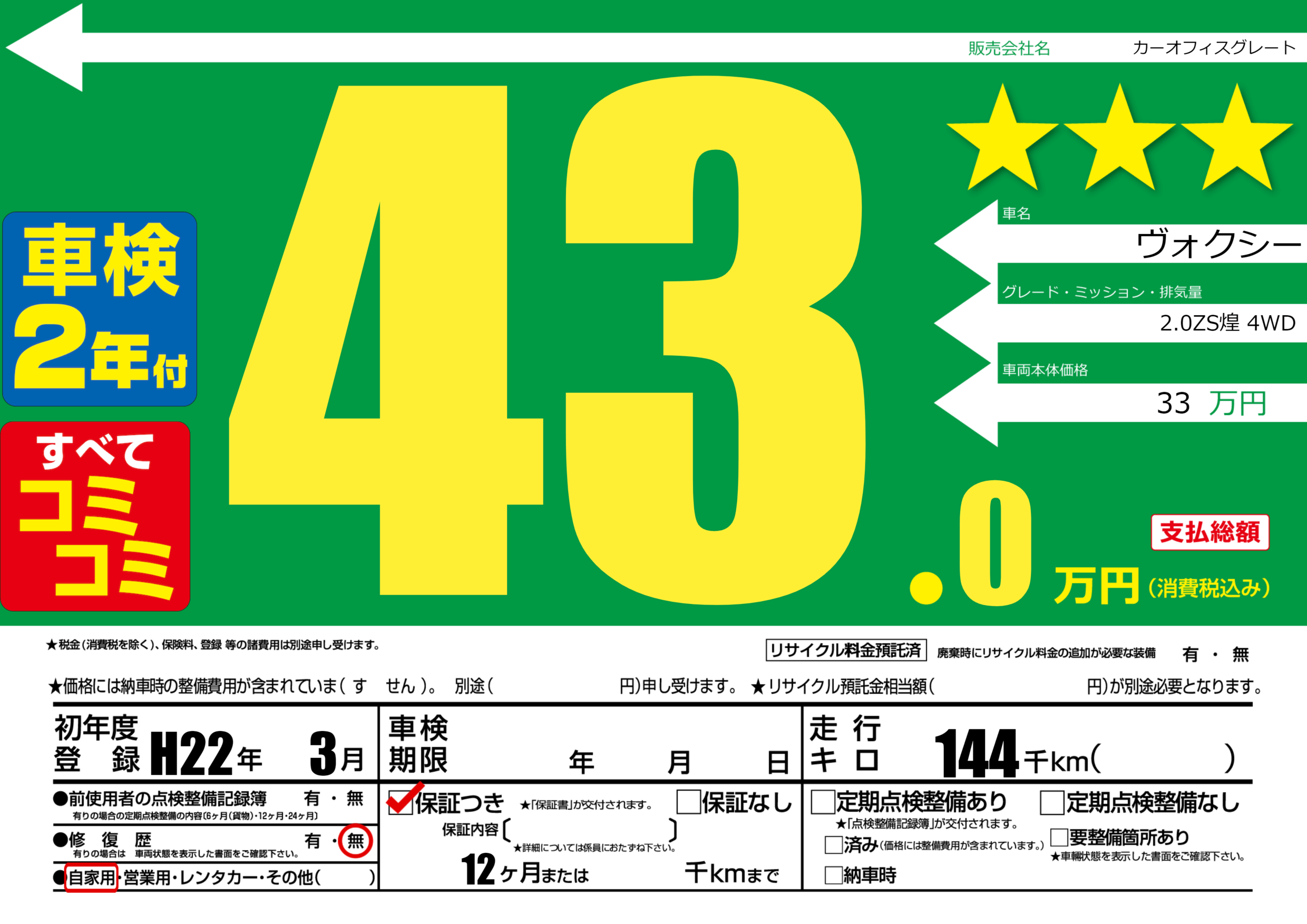 | 車名 | ヴォクシー | グレード ミッション 排気量 |