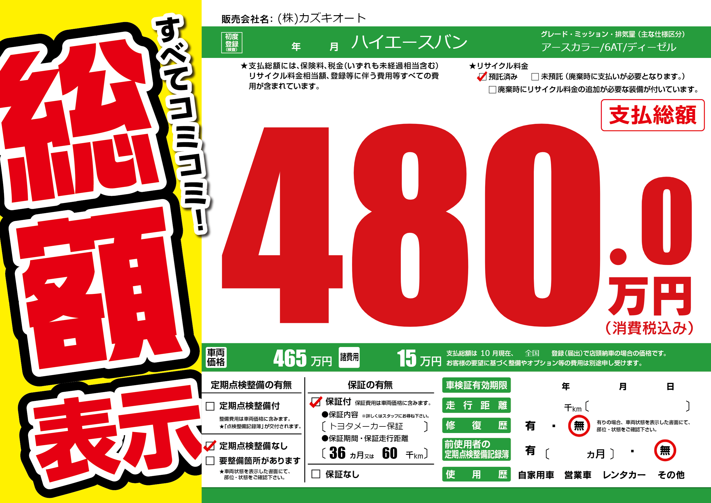 | 車名 | ハイエースバン | グレード ミッション 排気量 |