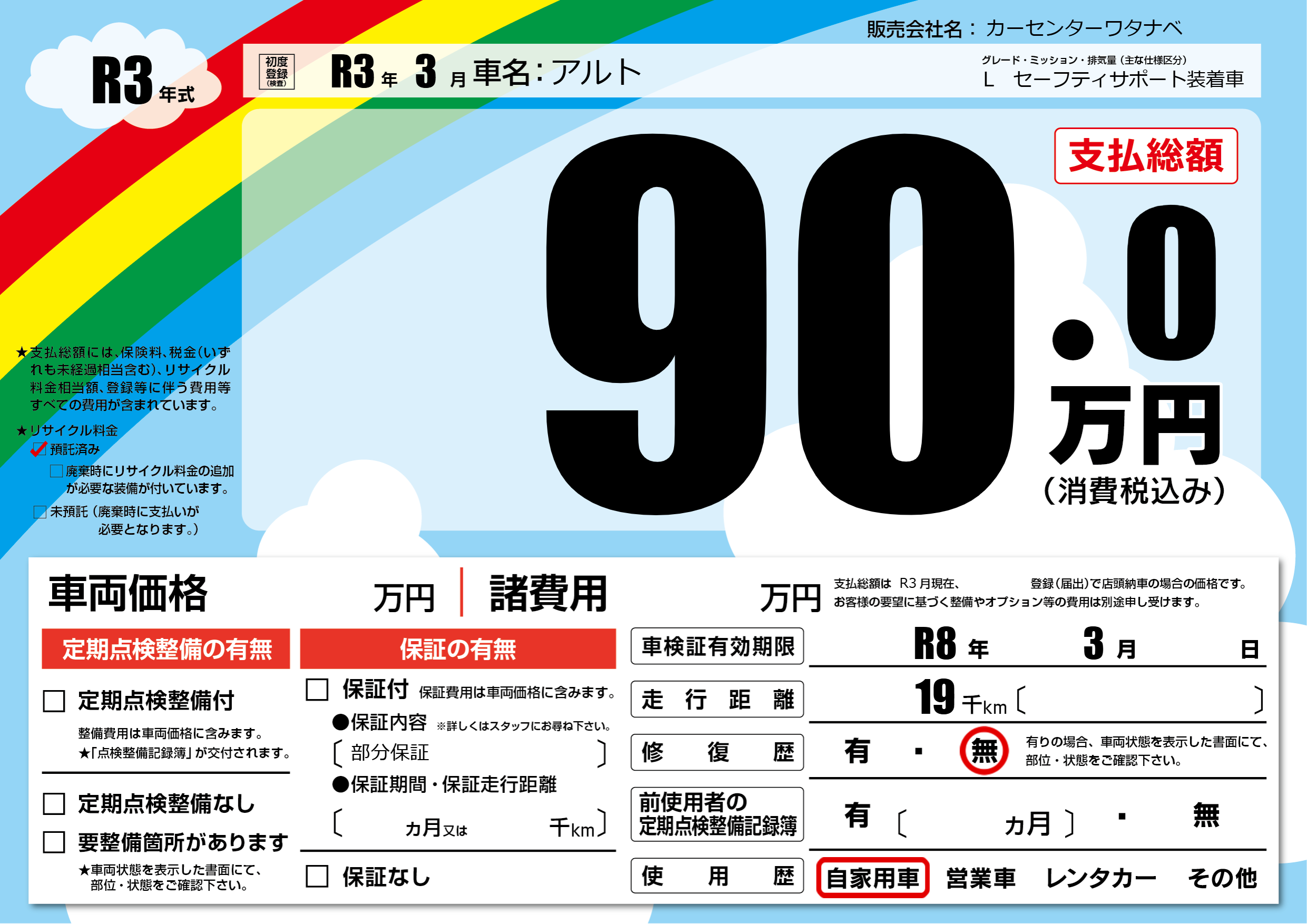なし | 車検制限 | R8年3月---月 |