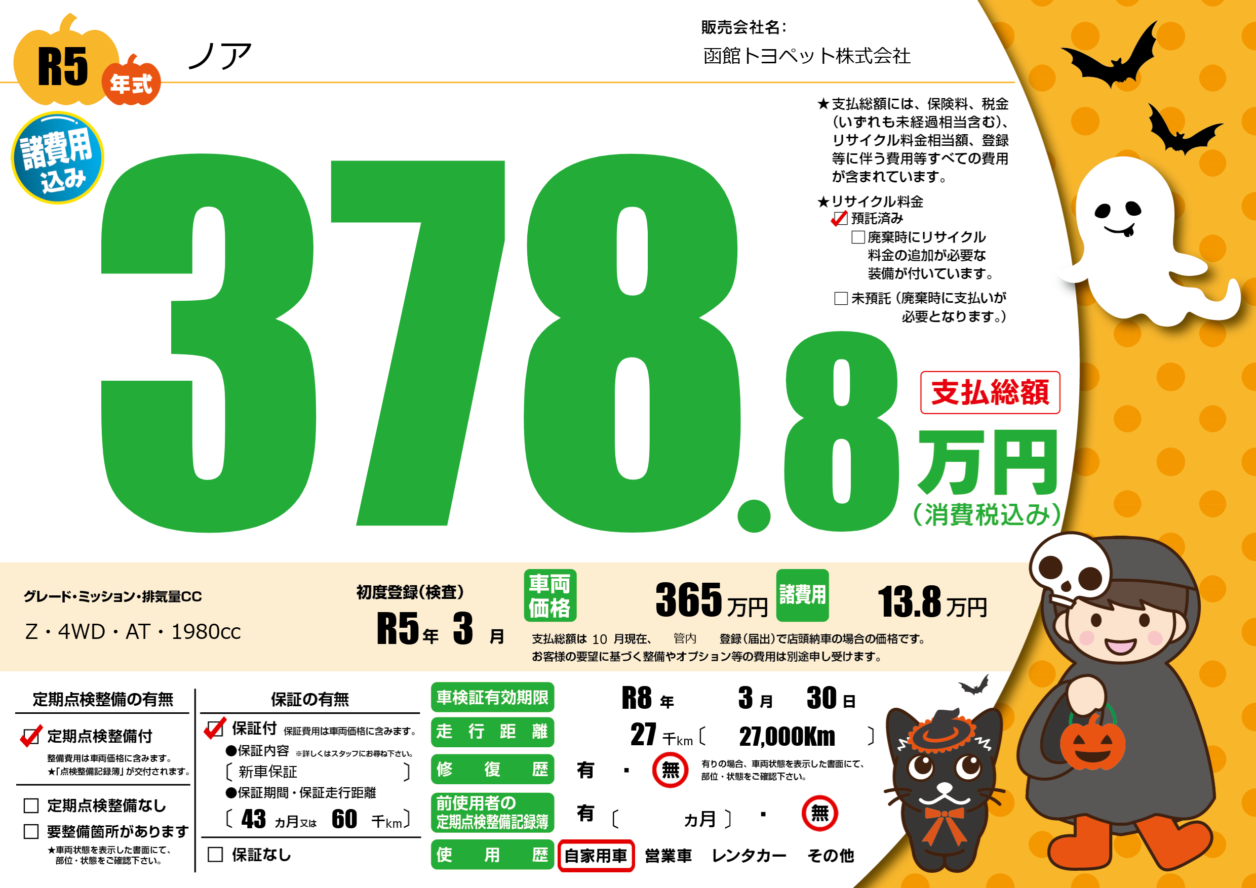 | 走行キロ | 2.7万km | 初年度登録 | R5年3月 |