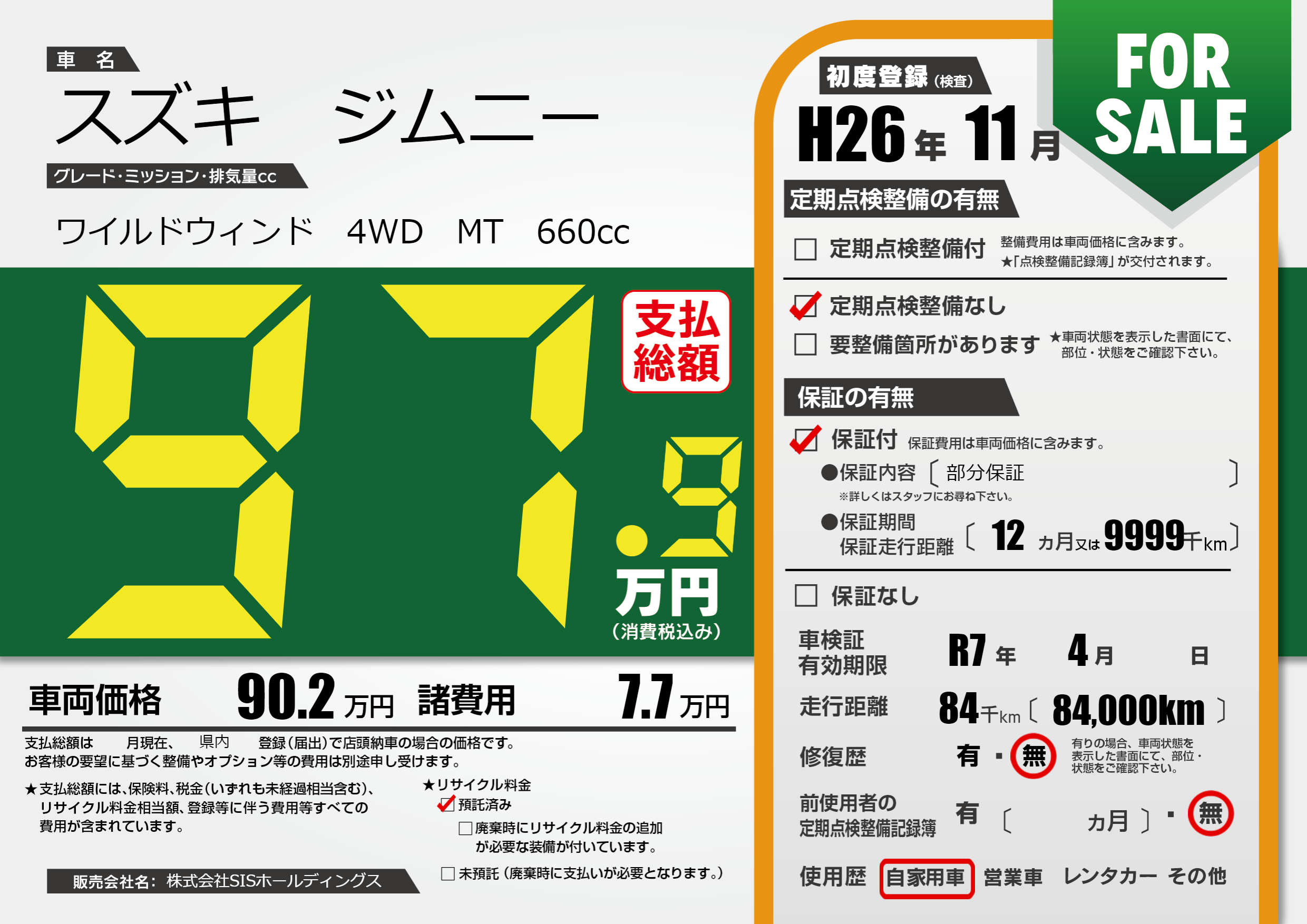 保証付き 保証内容(部分保証) 12ヶ月または(9999)千kmまで |