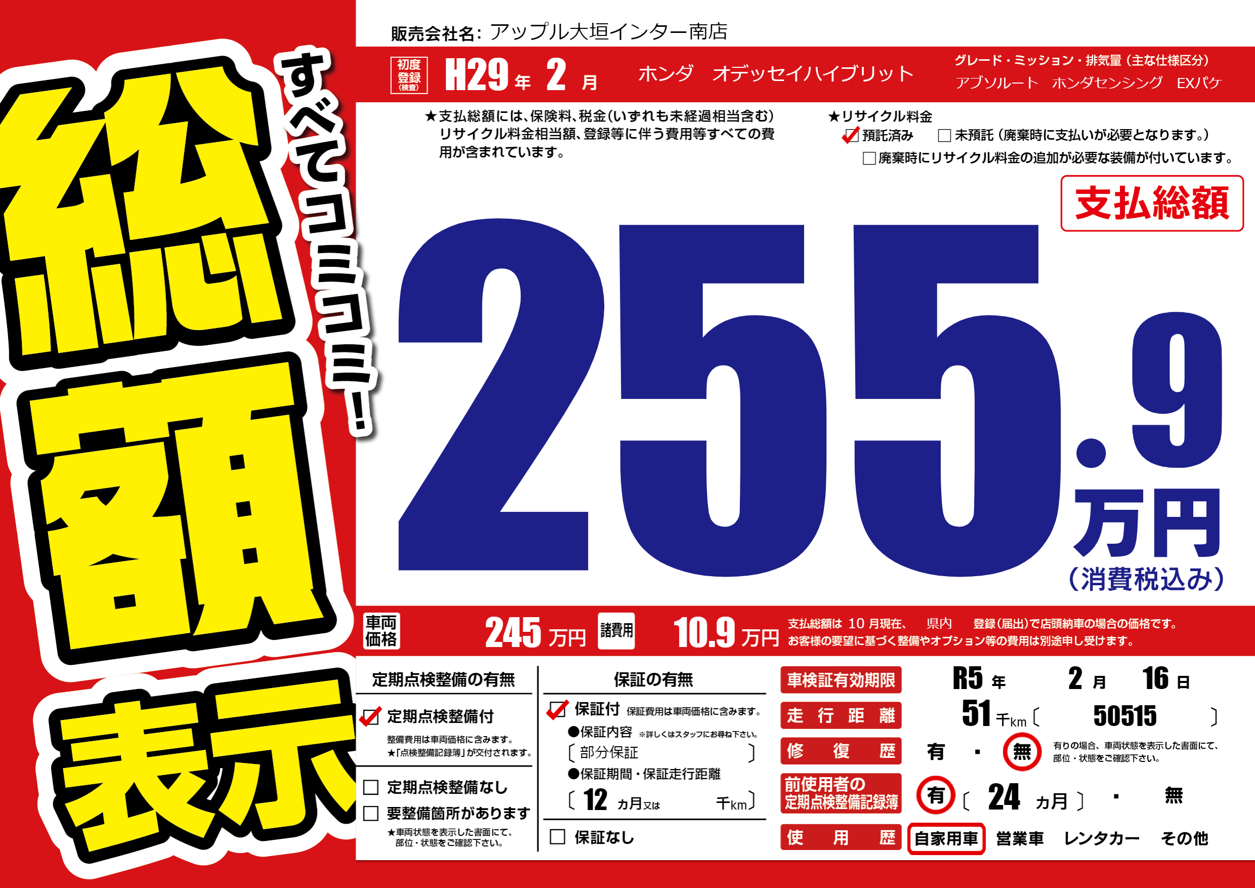 | 定期点検整備 | 定期点検整備あり | ||
