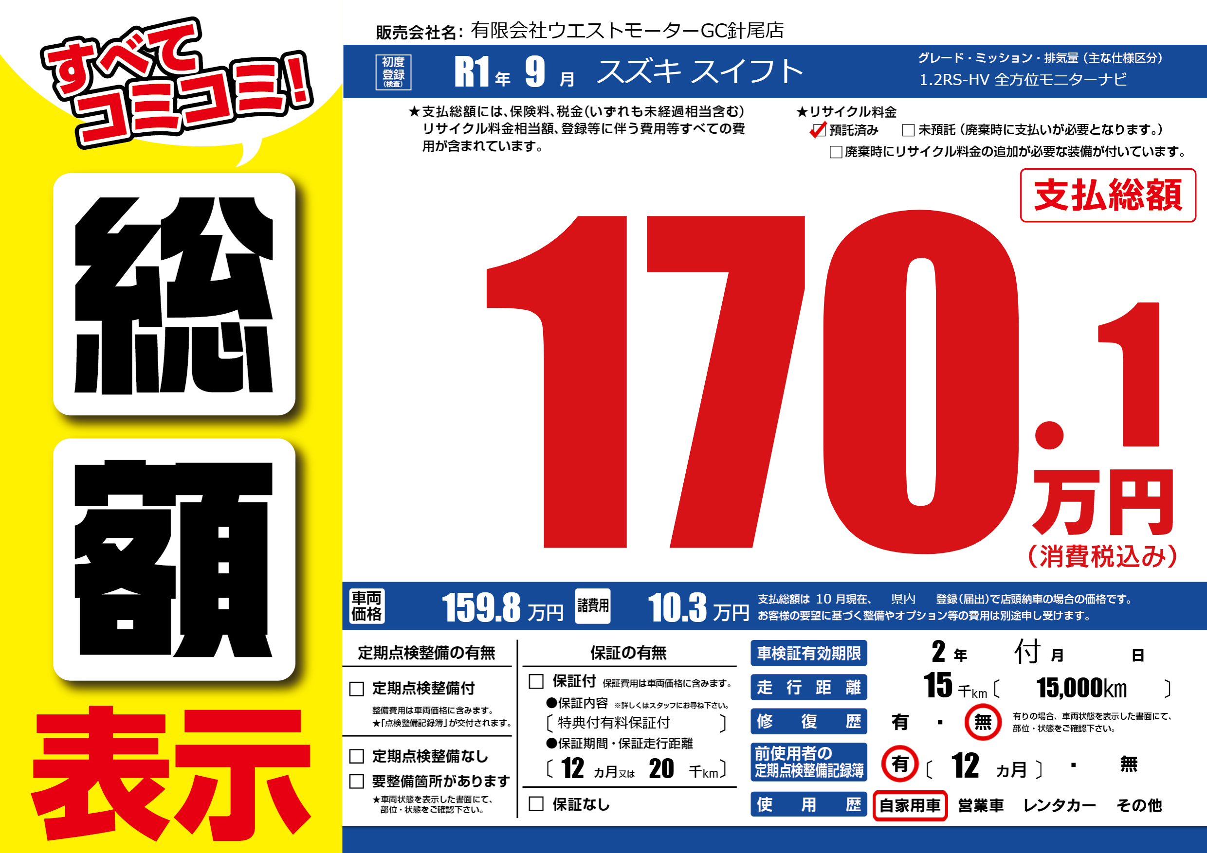 なし | 車検制限 | 2年付月---月 |