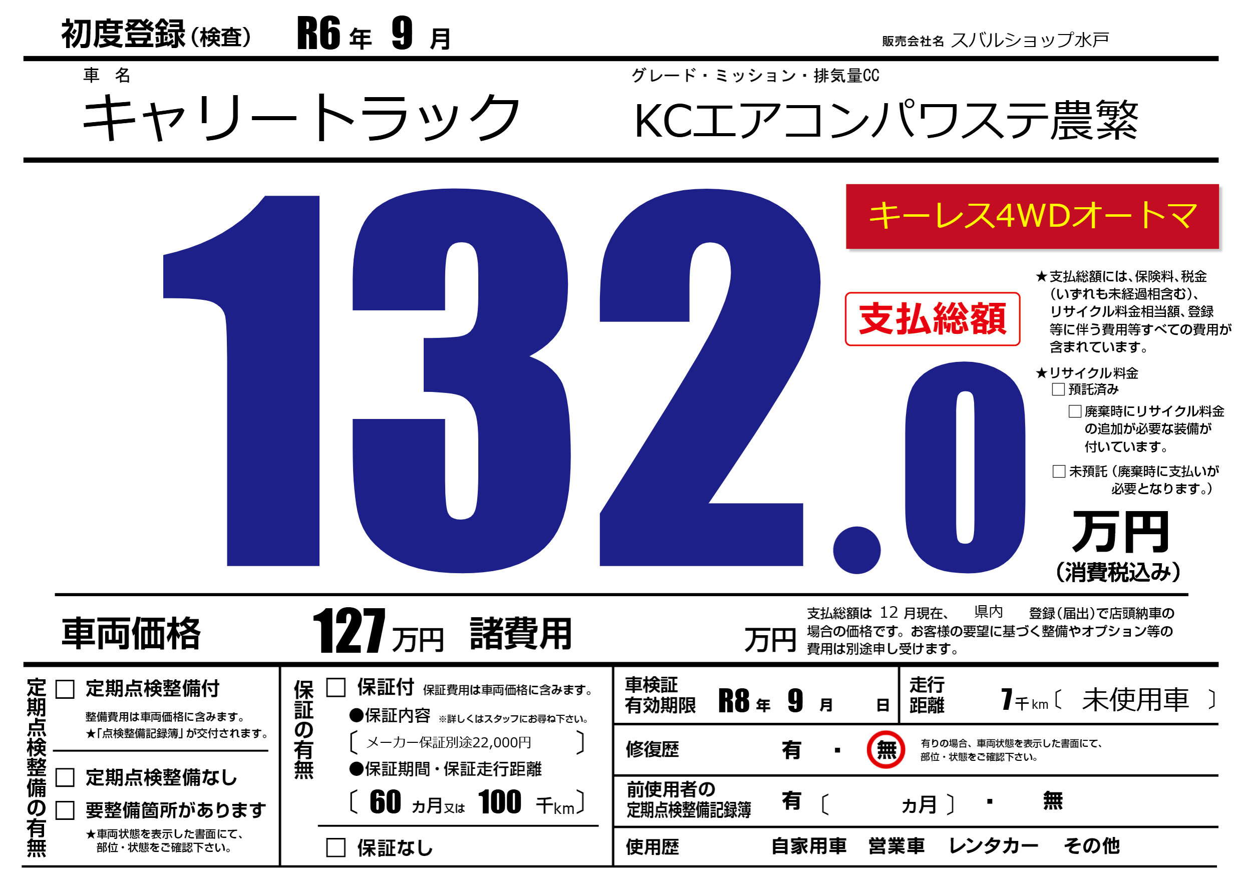 | 車名 | キャリートラック | グレード ミッション 排気量 |