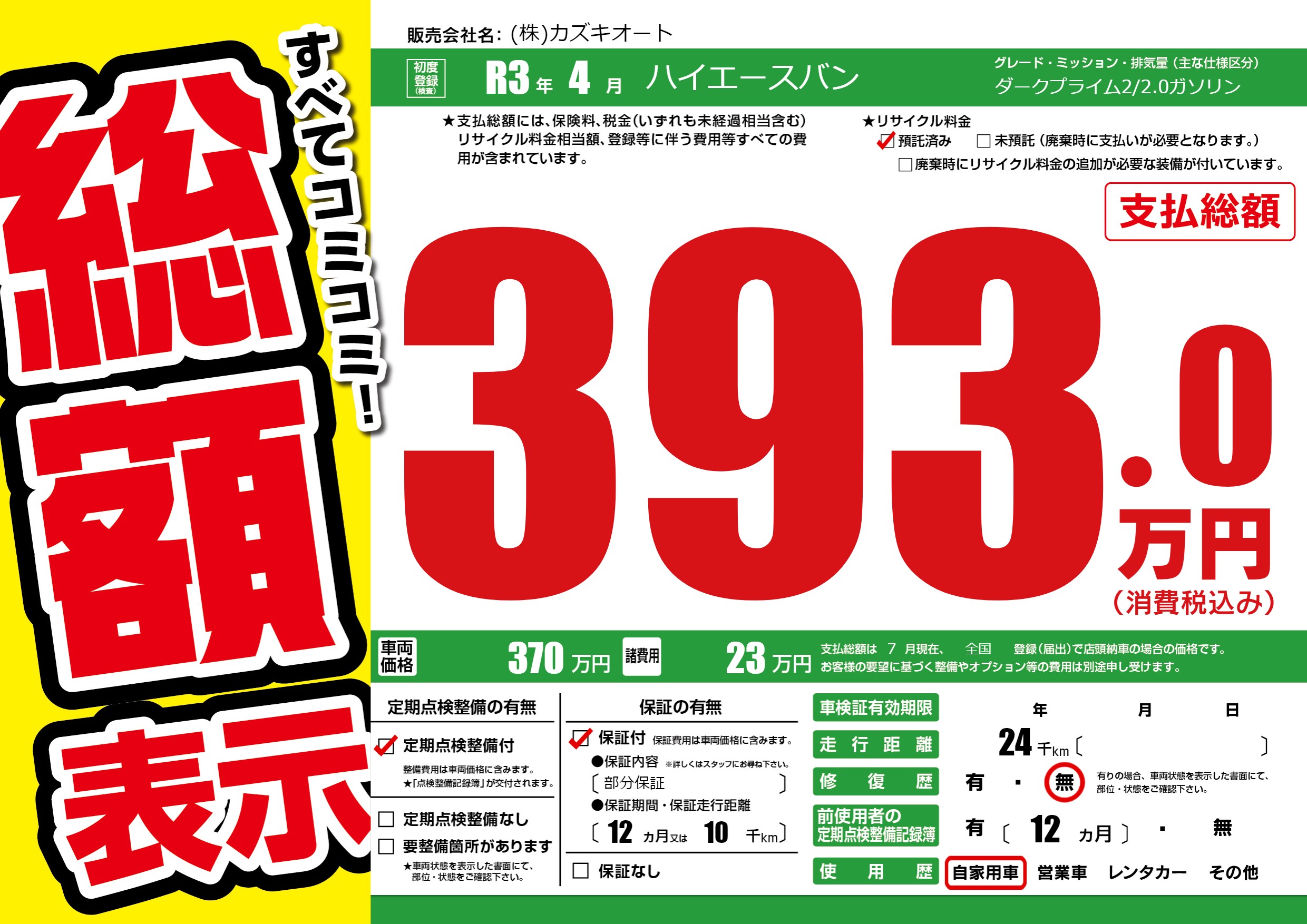 | 車名 | ハイエースバン | グレード ミッション 排気量 |