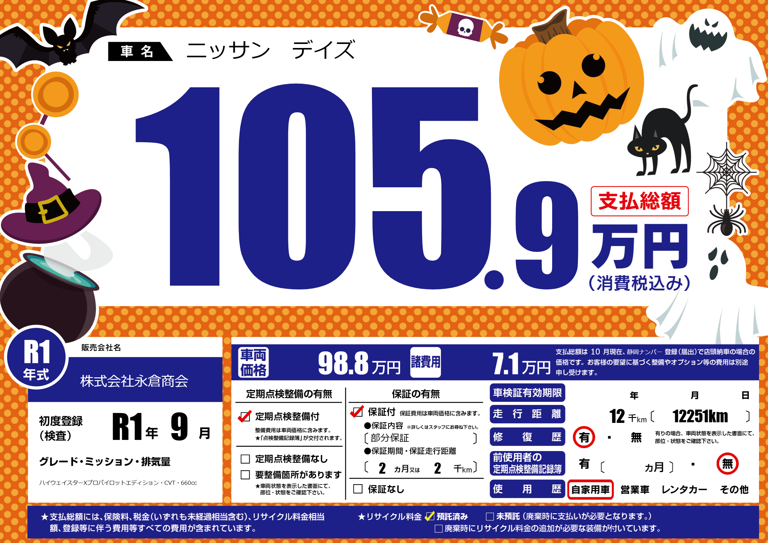 | 車名 | ニッサン デイズ | グレード ミッション 排気量 |