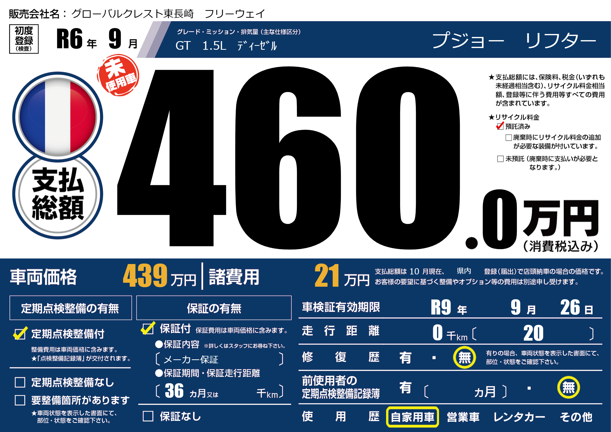 | 車名 | プジョー リフター | グレード ミッション 排気量 |