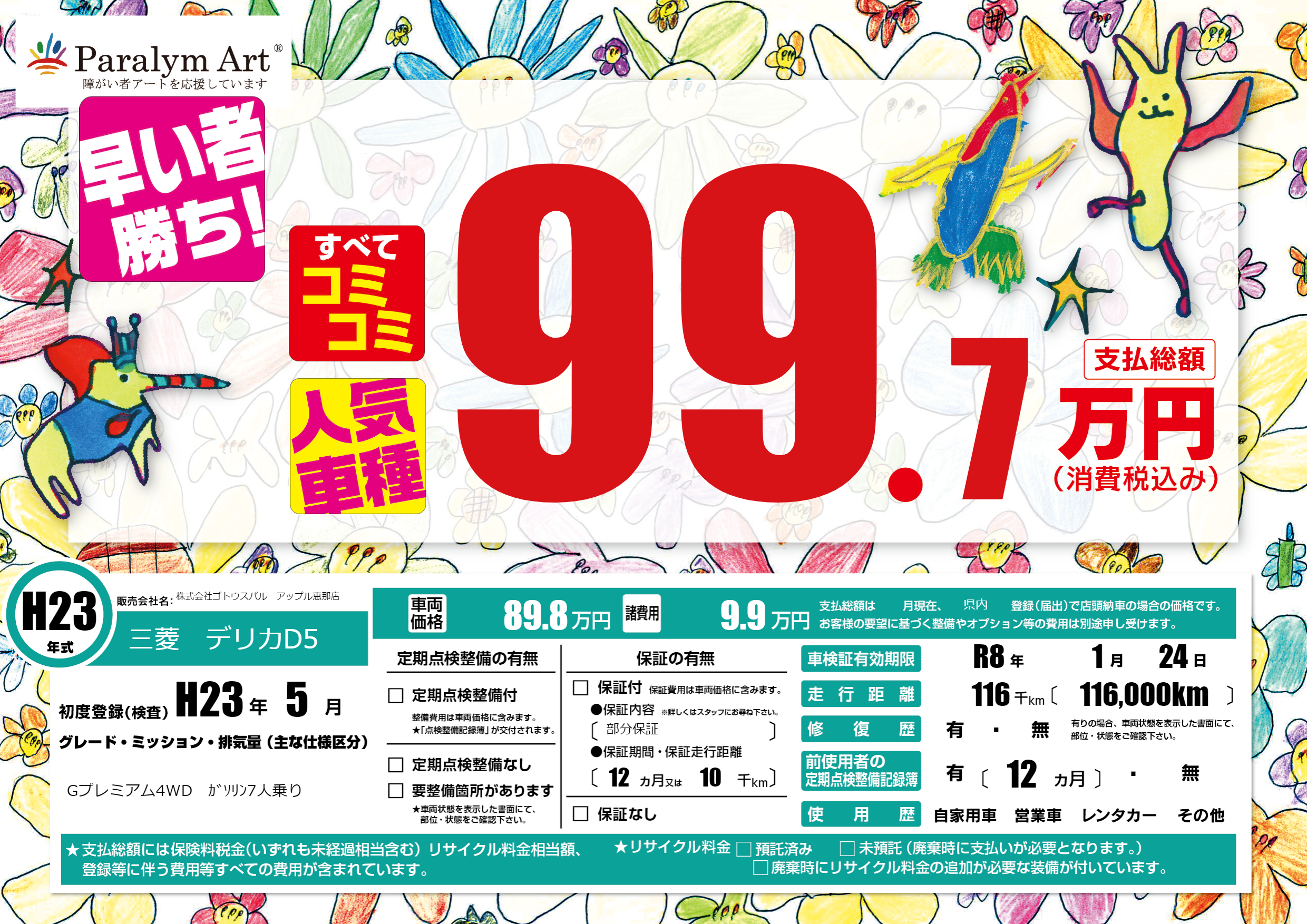 | 走行キロ | 11.6万km | 初年度登録 | H23年5月 |