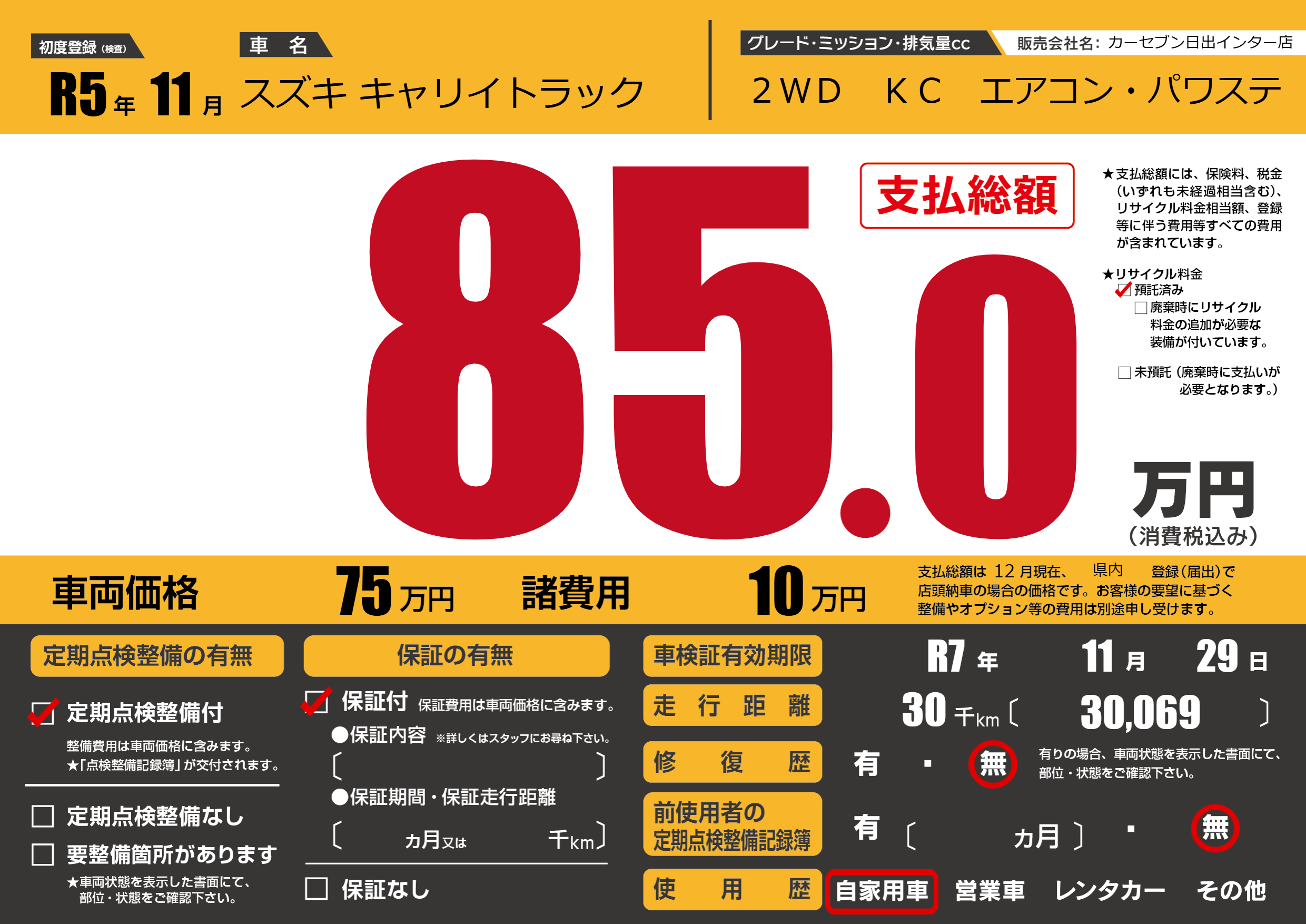 | 走行キロ | 3万km | 初年度登録 | R5年11月 |