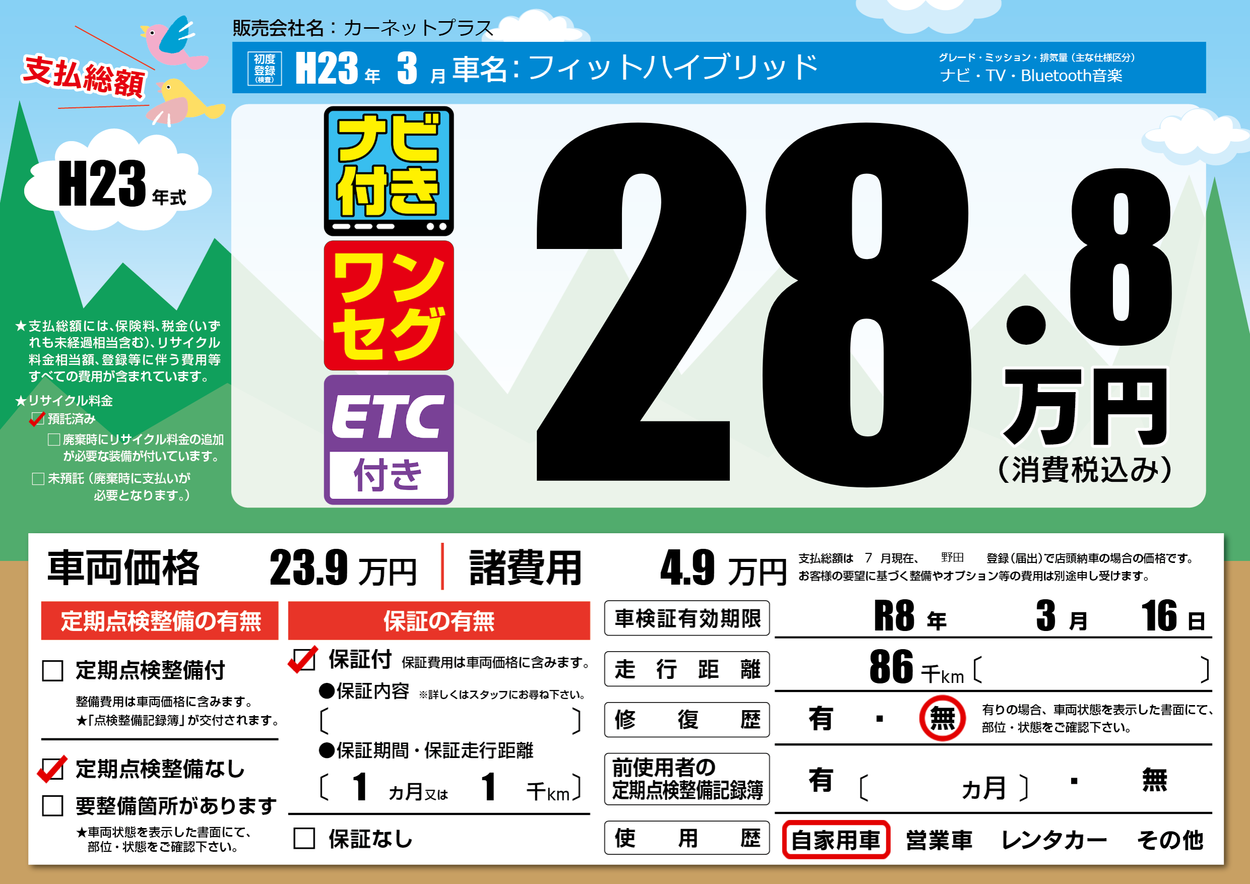 | 走行キロ | 8.6万km | 初年度登録 | H23年3月 |