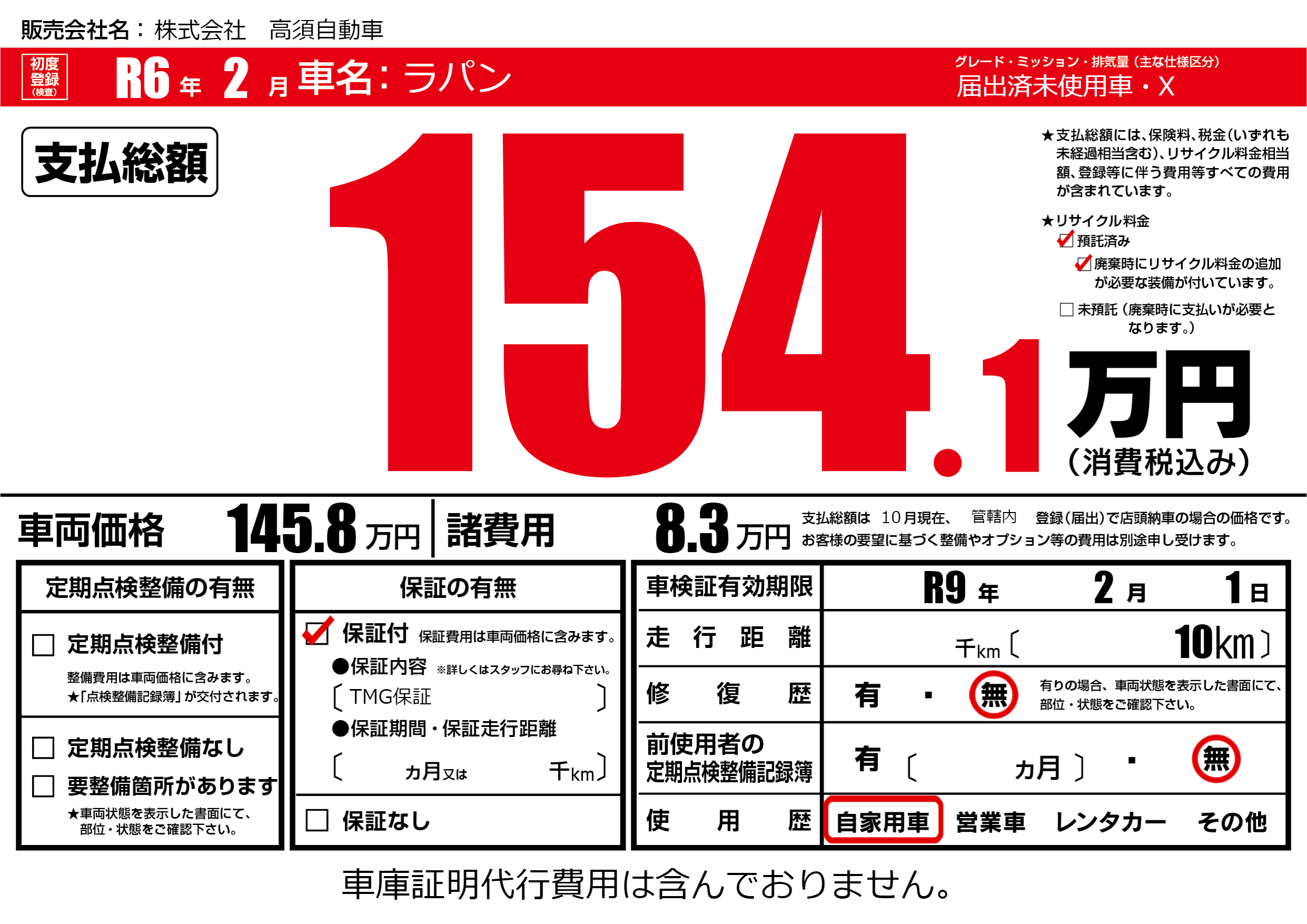 保証付き 保証内容(TMG保証) ---ヶ月または()千kmまで |