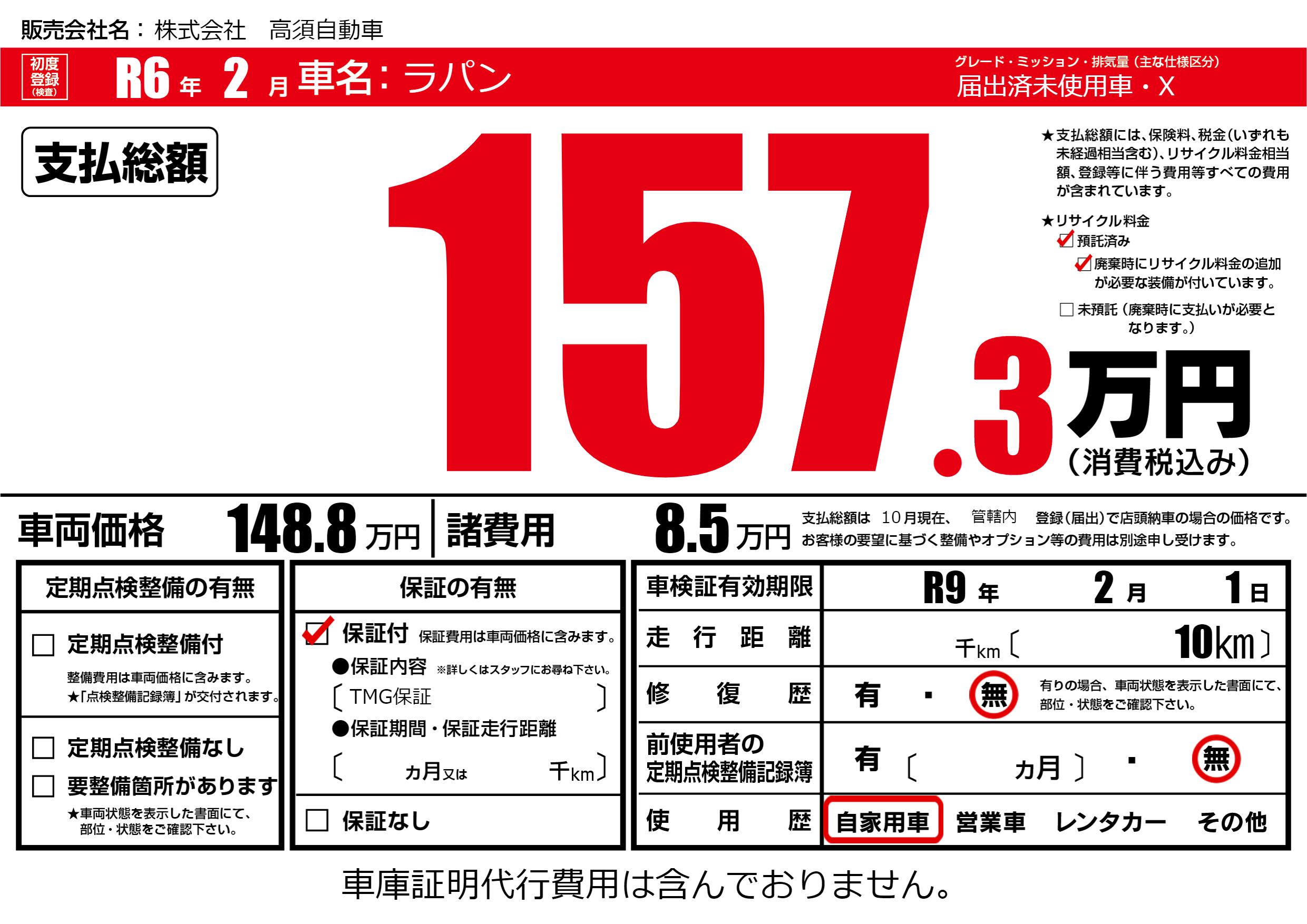 | 走行キロ | - | 初年度登録 | R6年2月 |