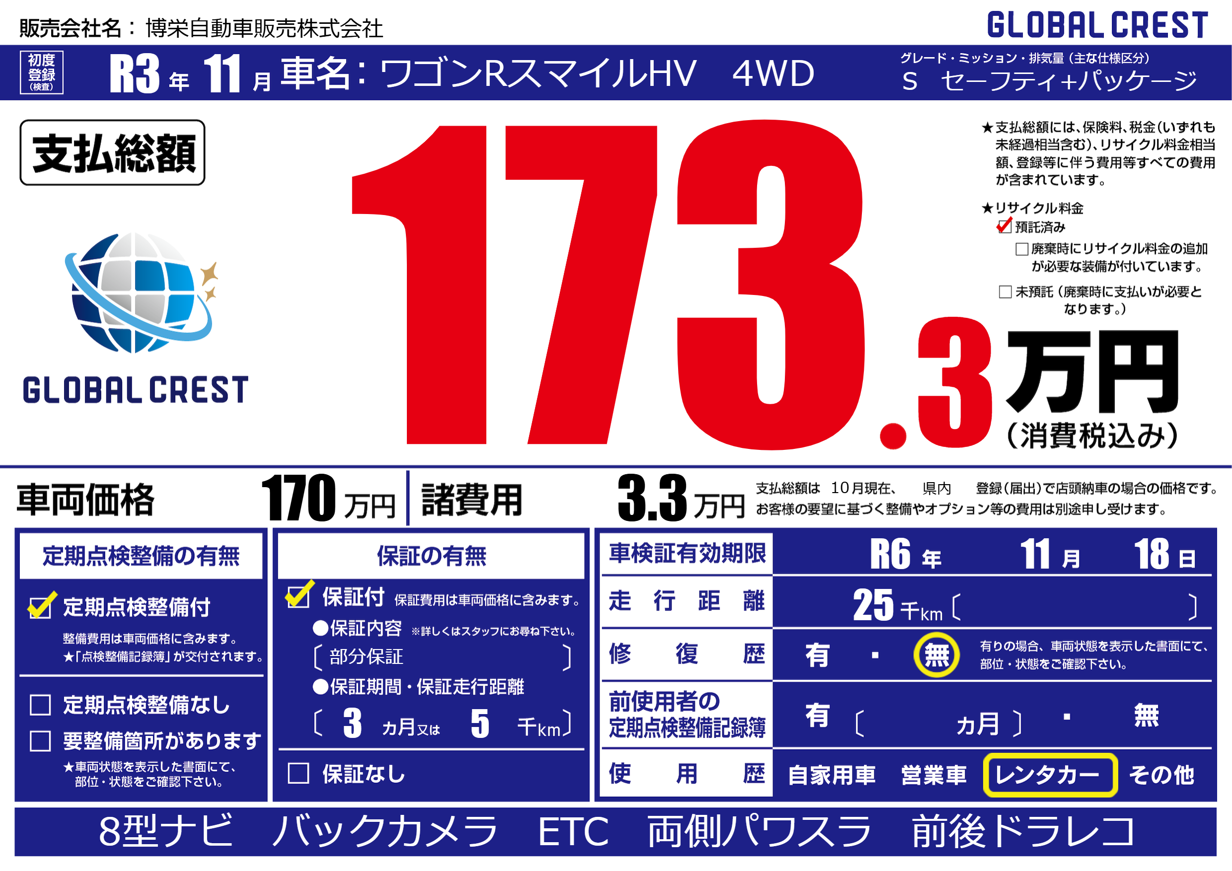 なし | 車検制限 | R6年11月18月 |