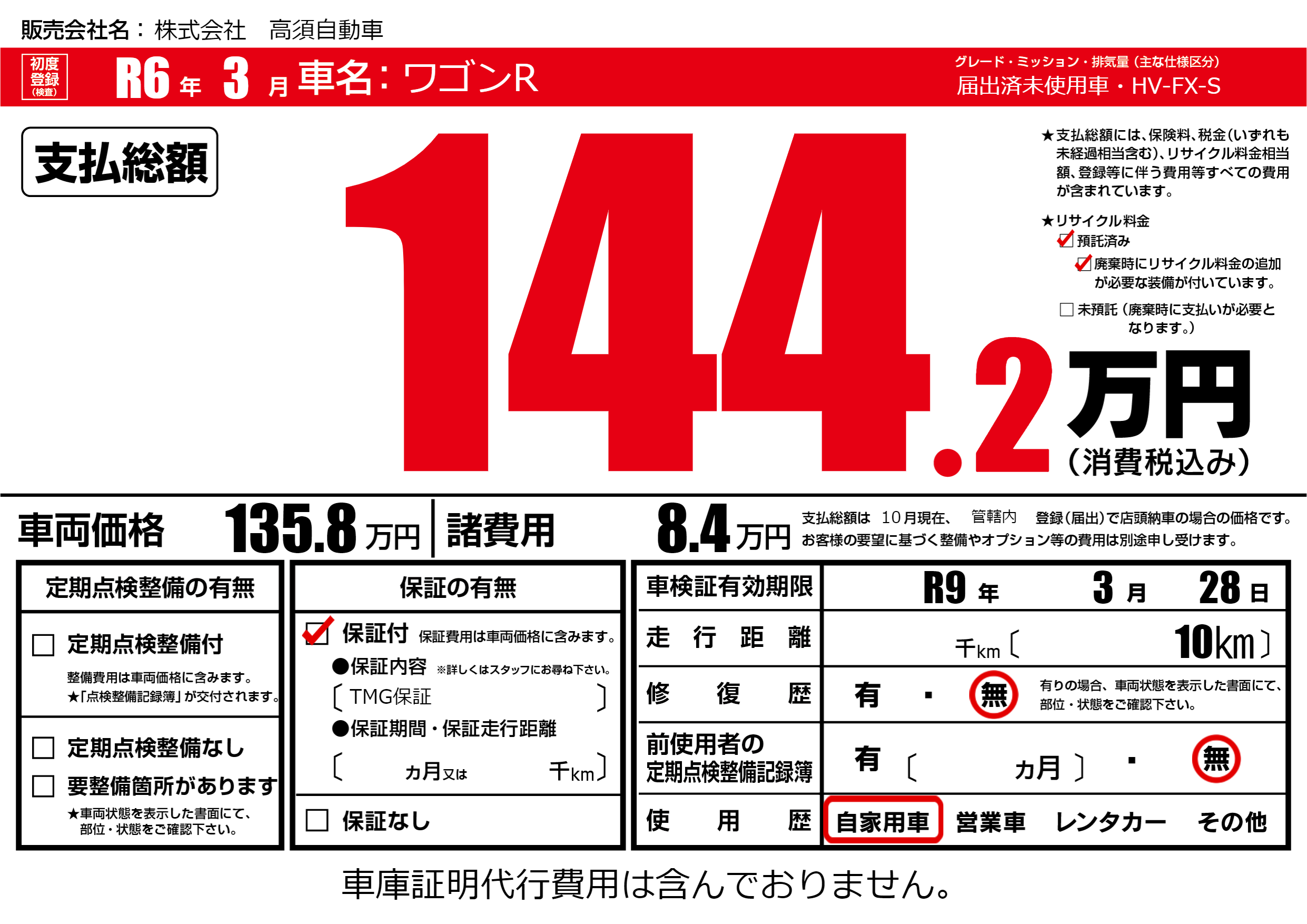 なし | 車検制限 | R9年3月28月 |